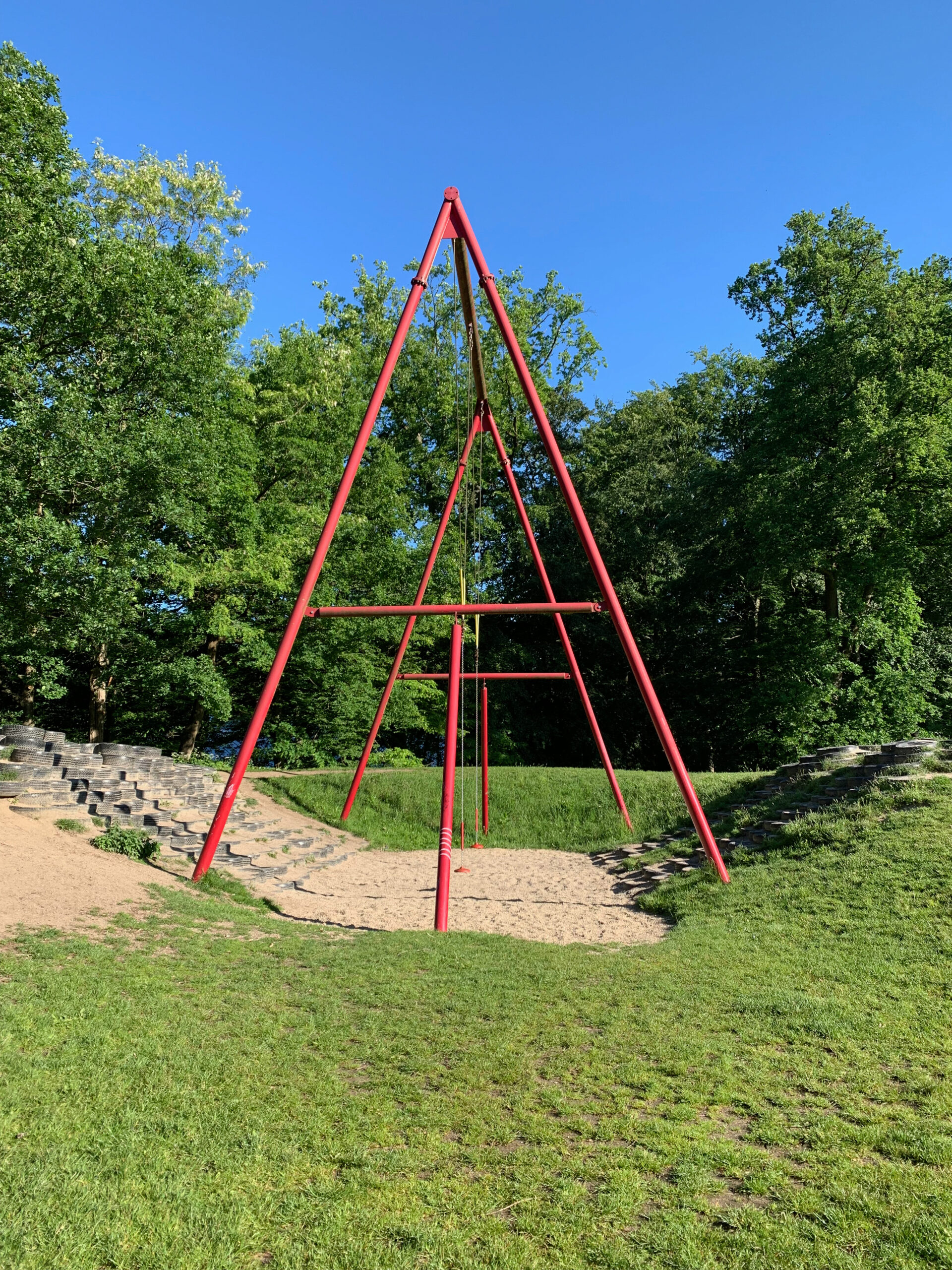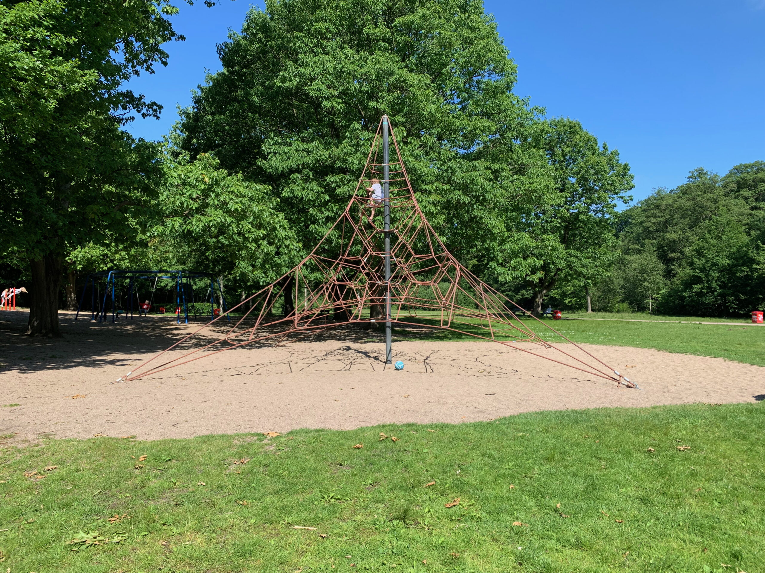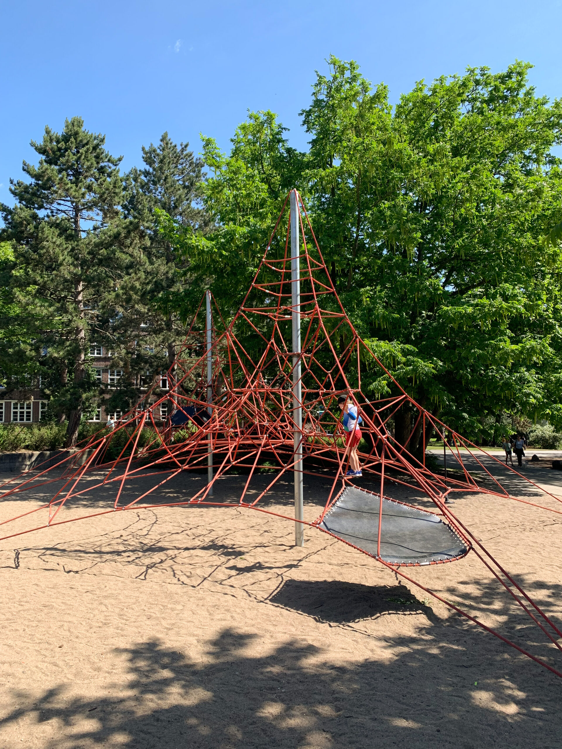 Besonders beliebt bei allen Kindern ist die hohe rote Kletterspinne, wo die Kids einen tollen Blick von oben auf den großen Hamburg Spielplatz haben.