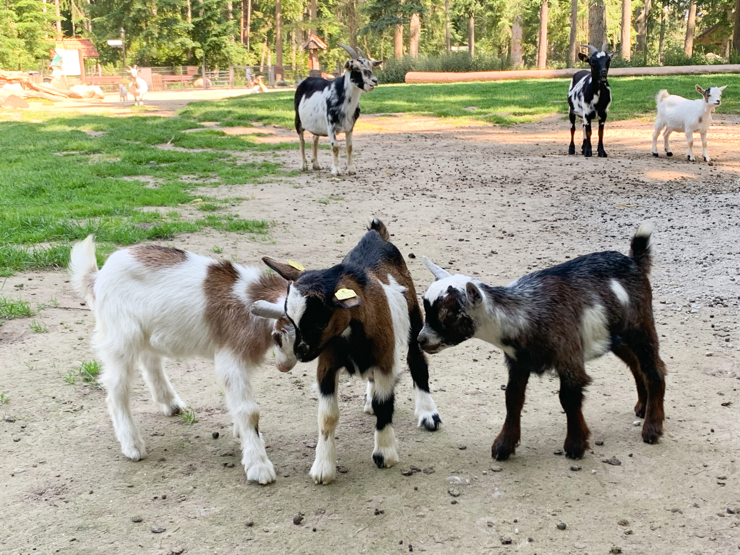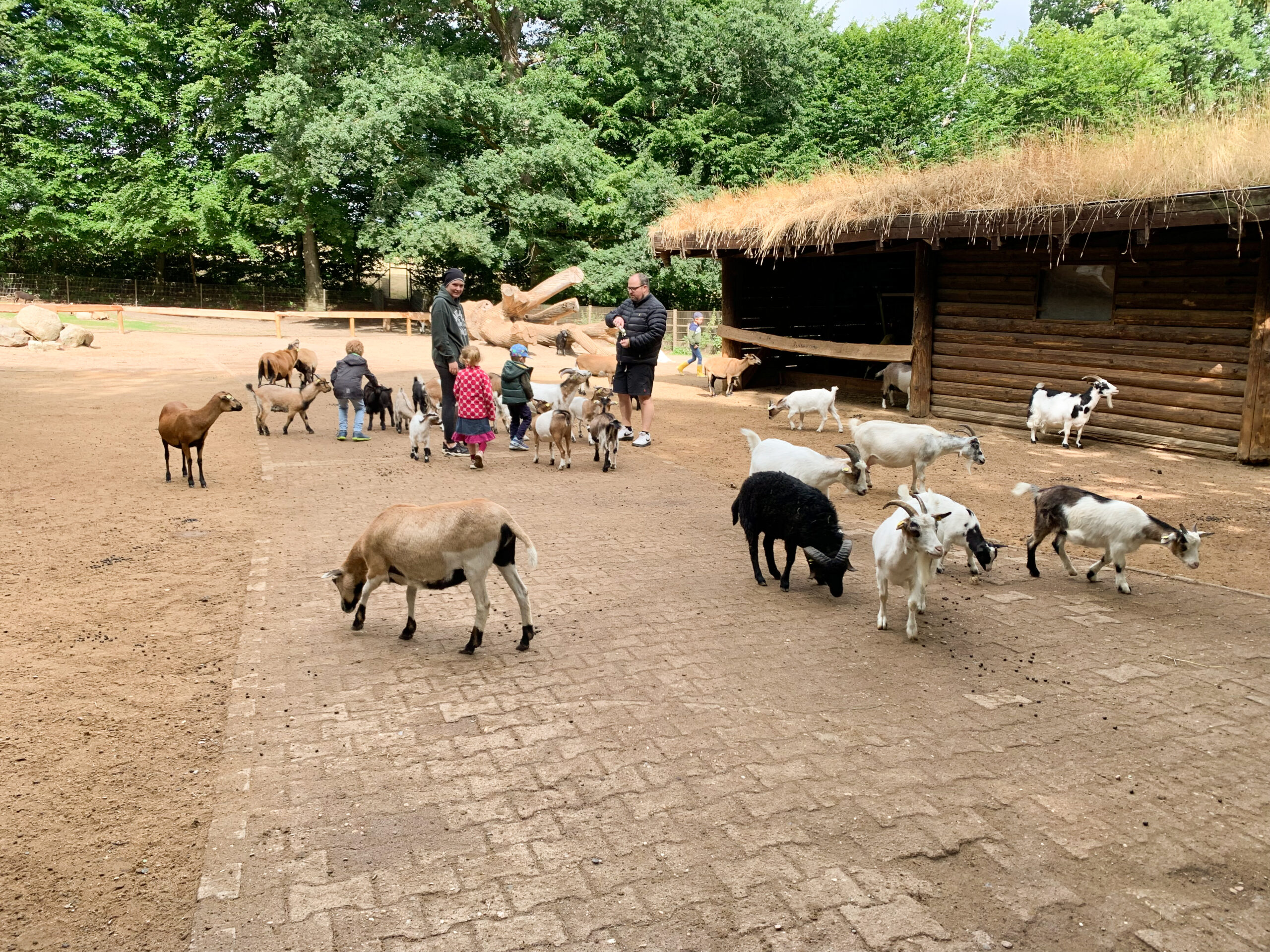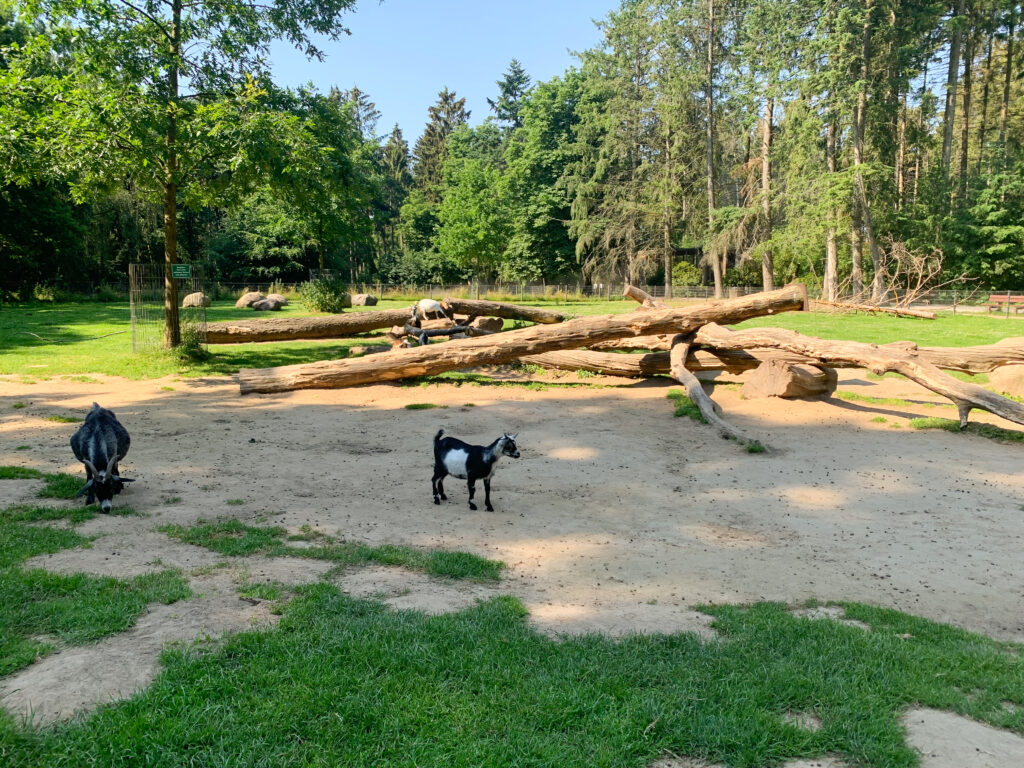 Im Streichelgehege, gleich zu Beginn des Rundgangs, können Ziegen gefüttert und gestreichelt werden. Futter gibt es vor Ort zu kaufen.