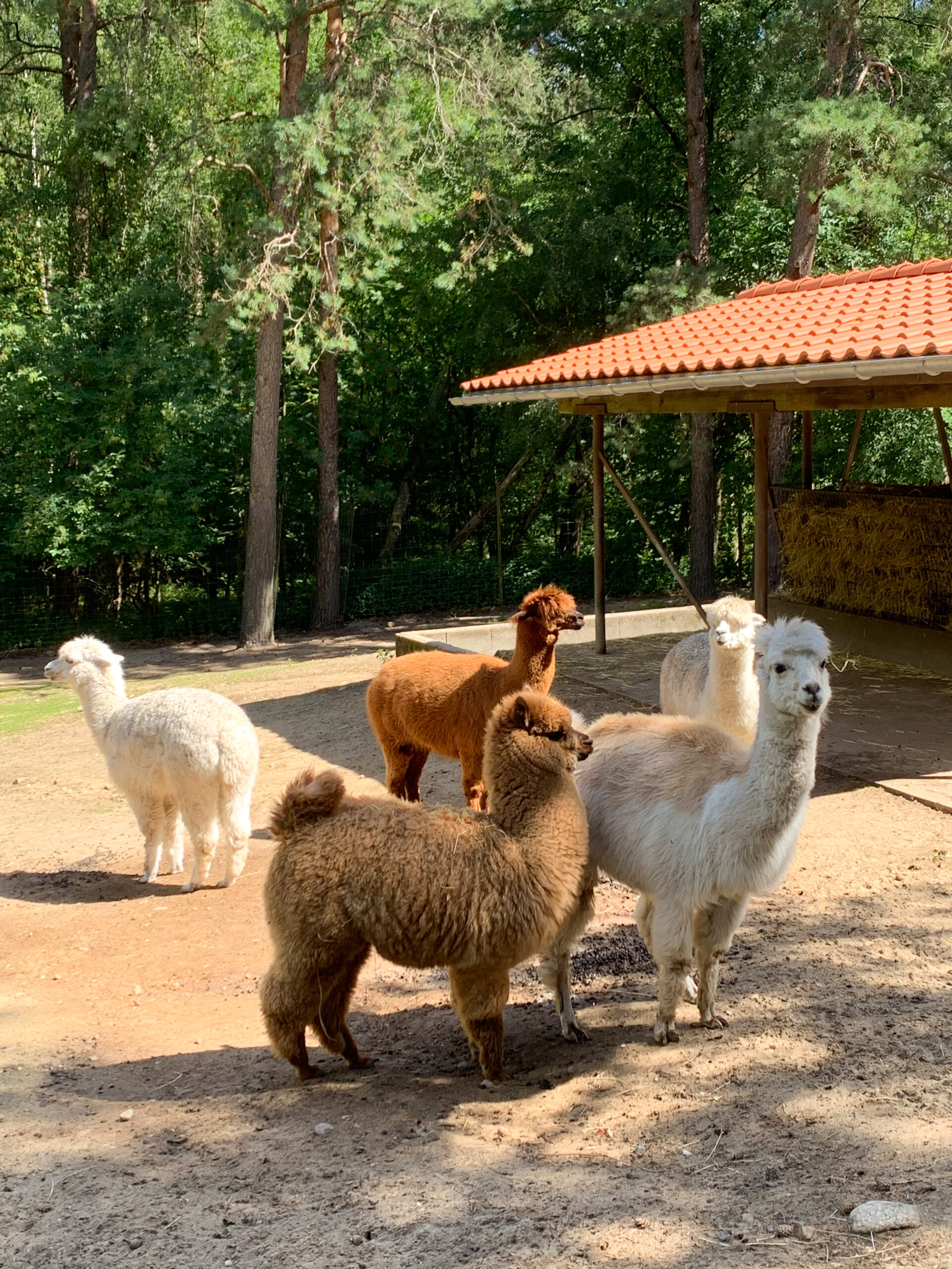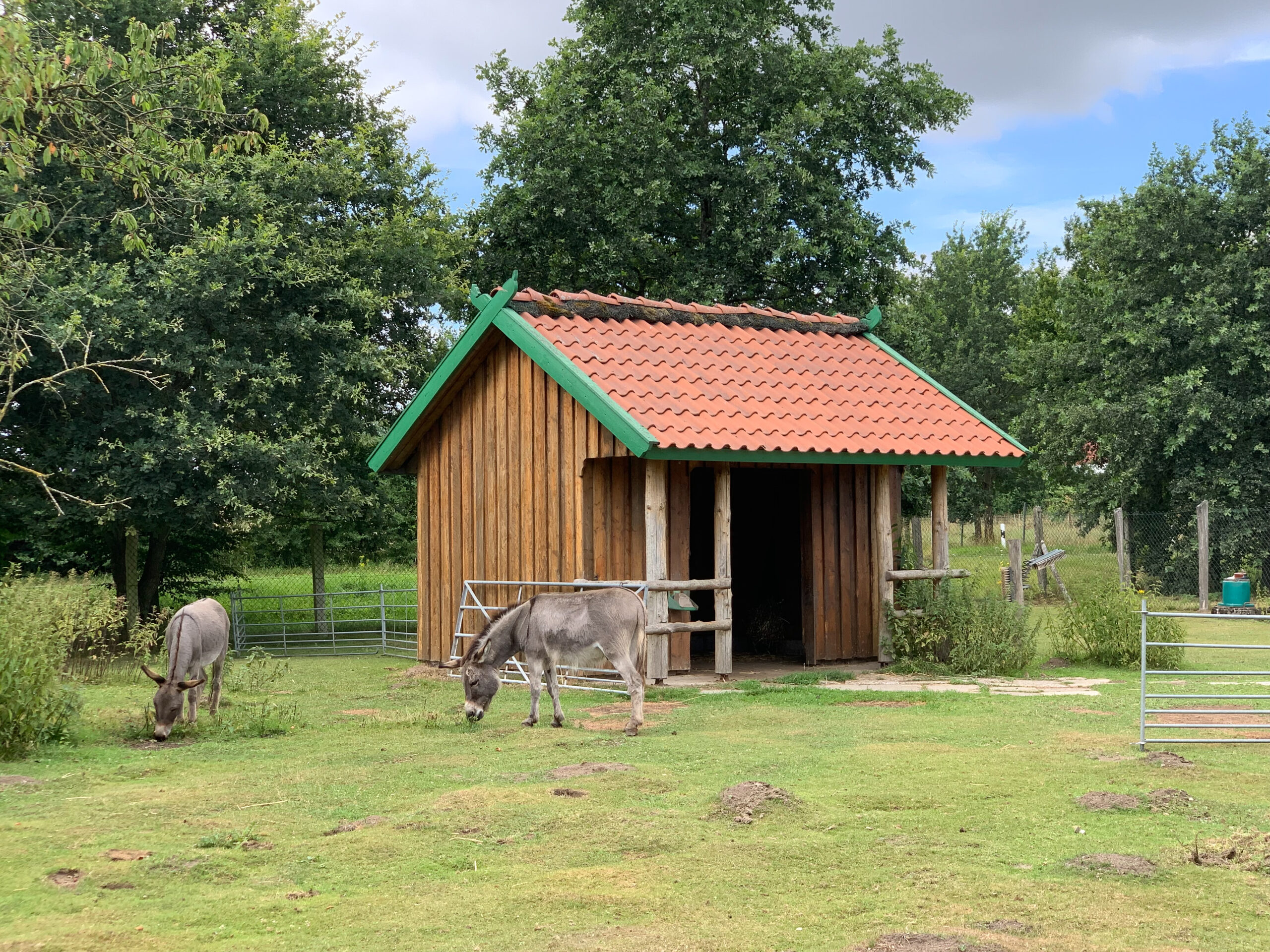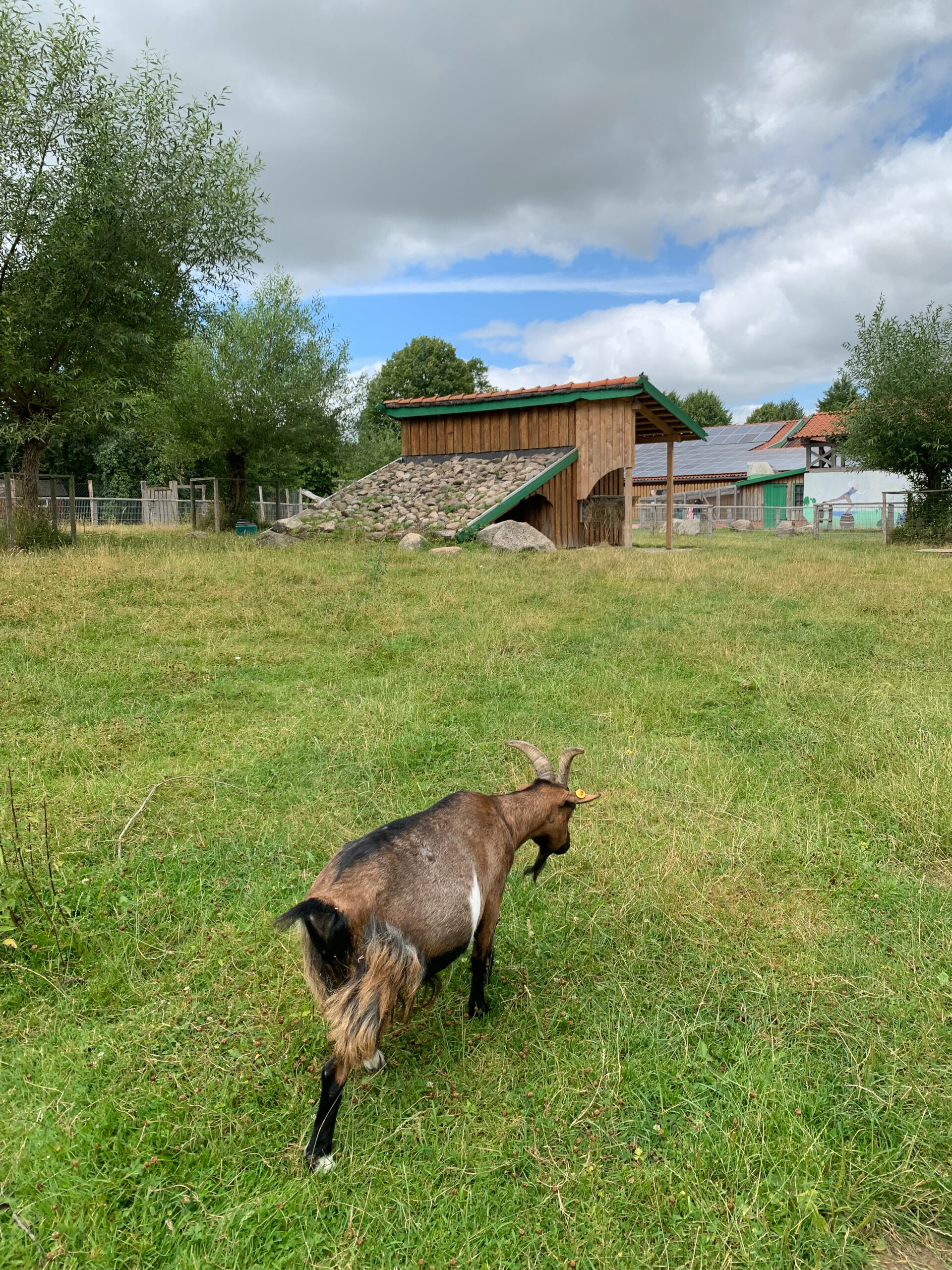 Ein besonderes Highlight ist der kleine Bauernhof direkt neben dem Feldspielplatz. Es gibt Ziegen, Gänse, Schweine und Esel.
