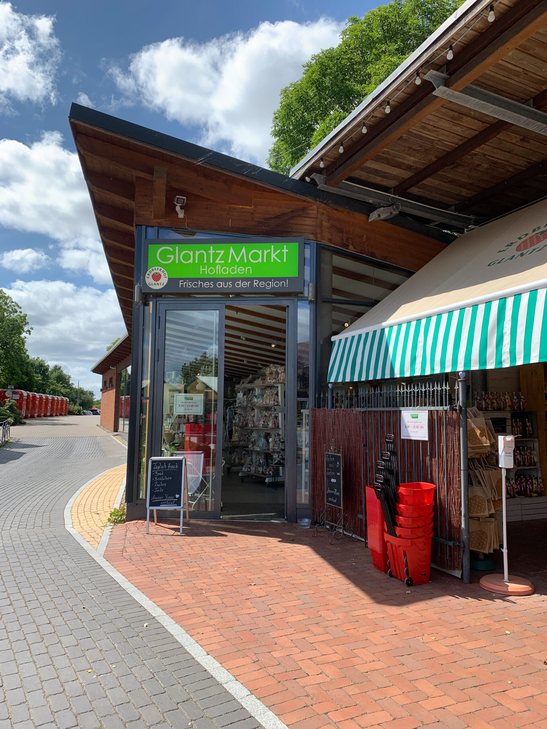 In der Erdbeer-Lounge im Außenbereich, neben dem Glantz Markt, gibt es im Sommer leckere Erdbeerkuchen und Erdbeerspezialitäten. Wenn ihr keine Lust auf selber pflücken habt, deckt ihr euch einfach auf dem Glanz Markt mit frischen Erdbeeren oder Himbeeren ein.