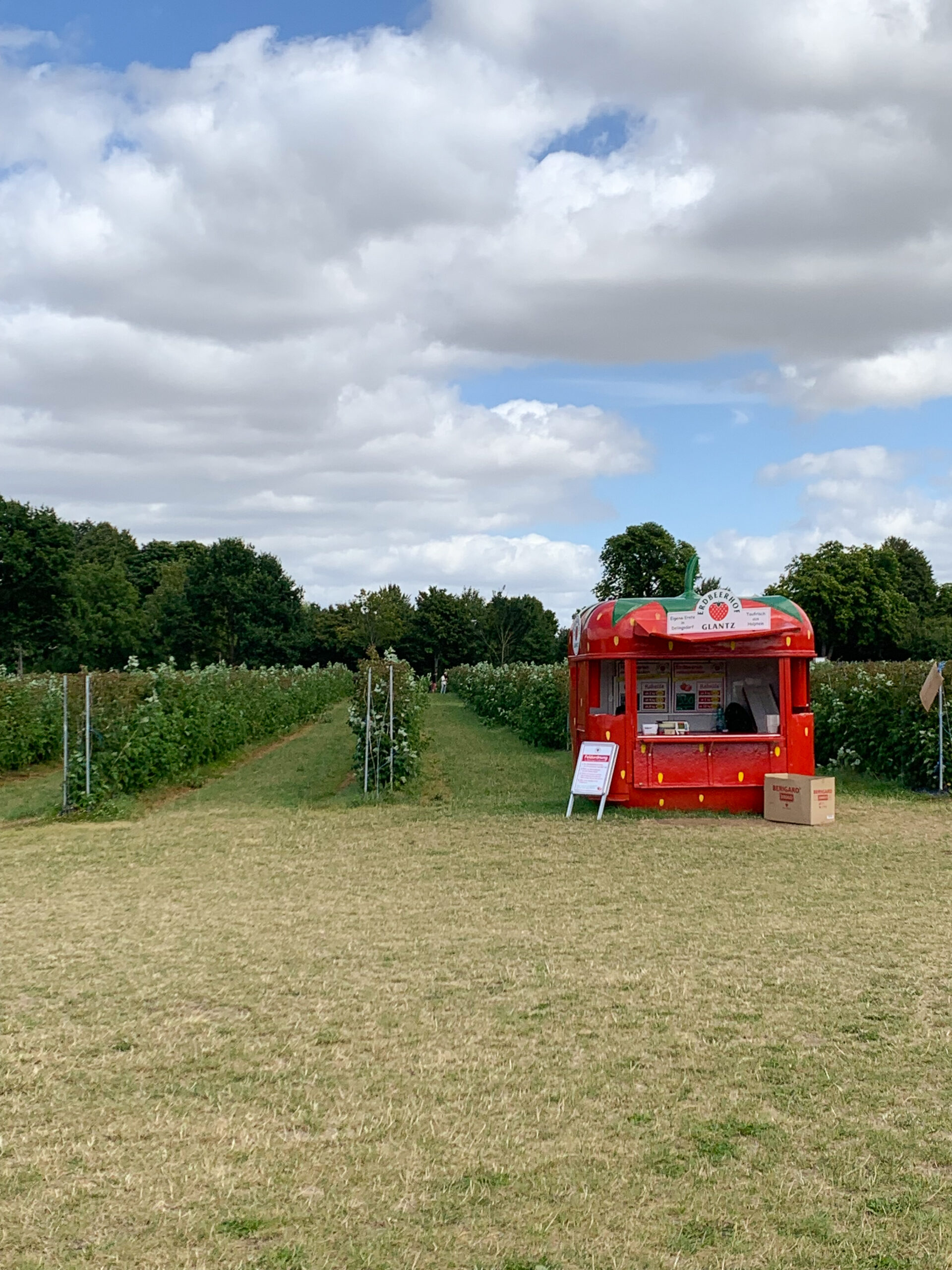 Der Erdbeeberhof Glantz hat zum einen den Glantz Markt und das Restaurant und zum anderen die Erdbeer- und Himbeerfelder zum Selber pflücken, die nicht direkt beim Restaurant liegen, sondern ein paar Minuten entfernt.