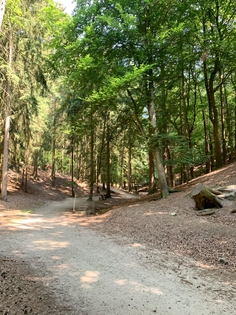 Es gibt drei unterschiedliche Rundgänge und auf dem Weg, schöne Sitzgelegenheiten zum Entspannen und viele Spielgeräte zum Toben.