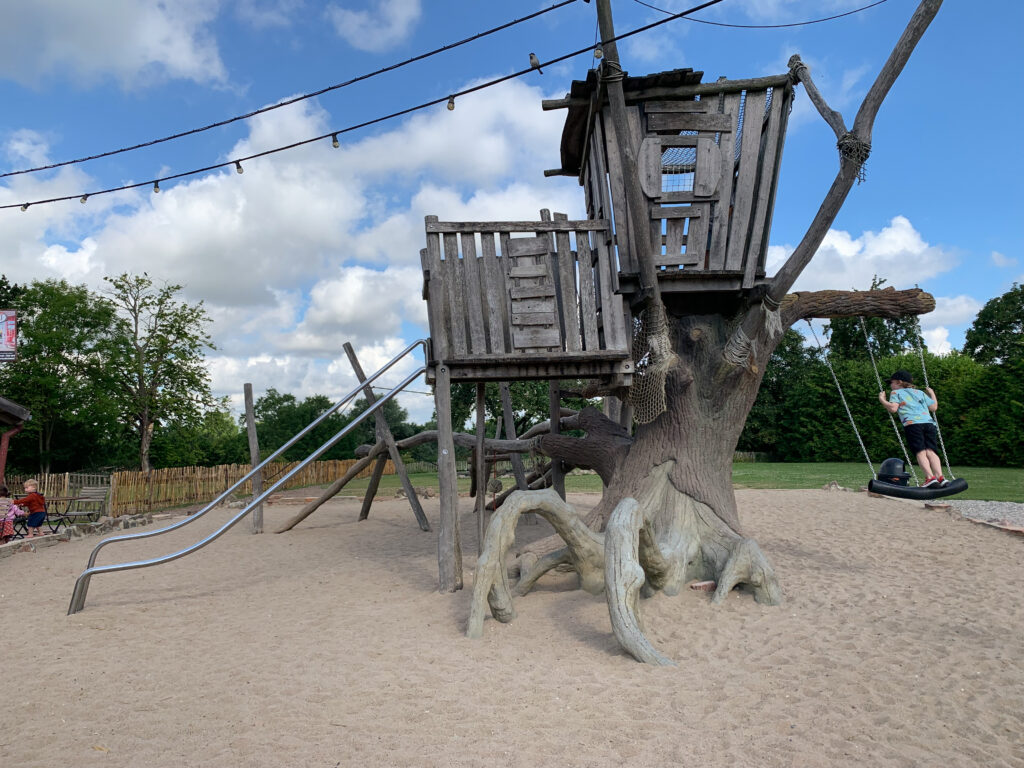 Im Eingangsbereich gibt einen riesigen Abenteuerspielplatz, sowie ein Restaurant und ein Imbiss, um sich nach dem langen Spaziergang zu stärken.
