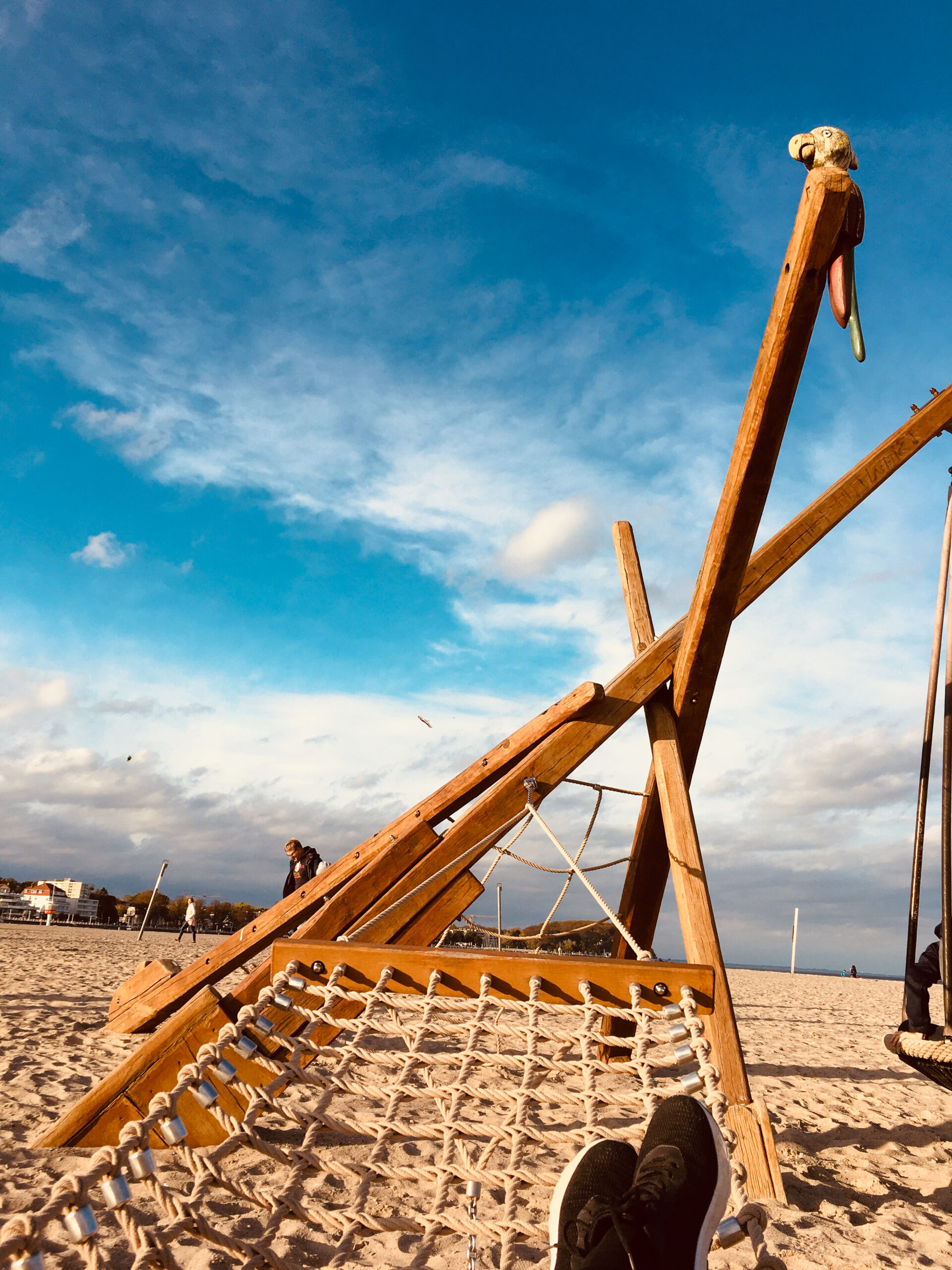 In Travemünde gibt es eine schöne Strandpromenade und einen richtig coolen Abenteuer Piratenspielplatz direkt am Strand mit Blick aufs Meer und die Trave. Ein Highlight sind die imposanten, vorbeifahrenden Fährschiffe.