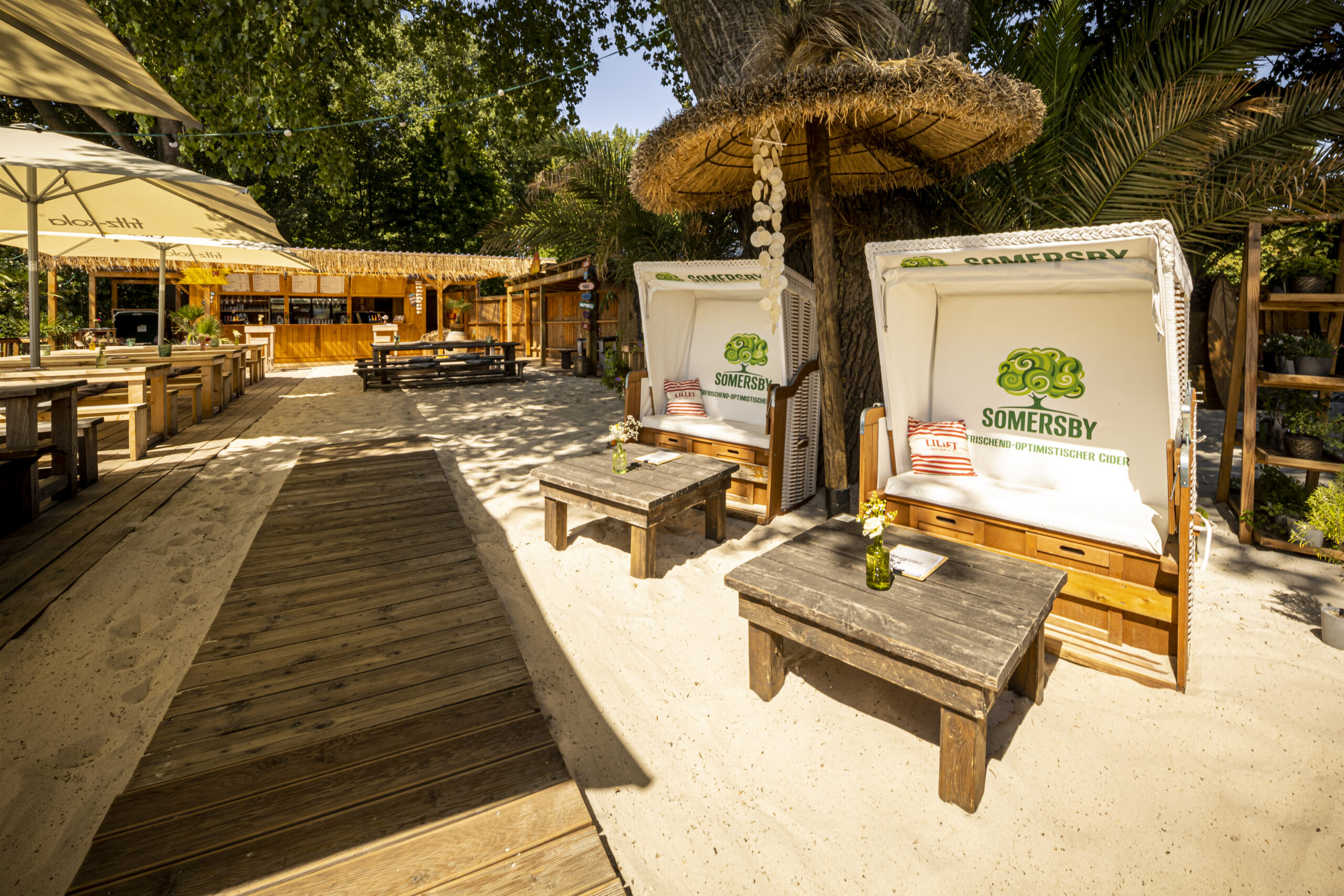Es gibt Pizzen, Brezel, Nachos oder frisches Obst wie Melone und Ananas sowie vegetarische und vegane Gerichte. Und jede Menge Cocktails, natürlich auch alkoholfrei.