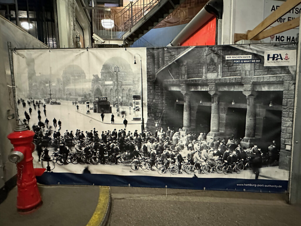 Die meisten Besucher starten auf der Seite bei den St. Pauli Landungsbrücken. Ihr könnt entweder die Treppen nehmen oder den Fahrstuhl. Ein besonderes Highlight für Kinder sind natürlich die Lastenaufzüge, die auch von den Fußgängern genutzt werden können. Ich würde euch aber auf jeden Fall empfehlen, einen Blick auf die beeindruckende Treppenkonstruktion zu werfen.