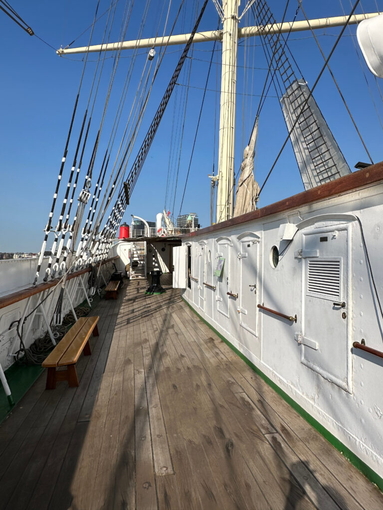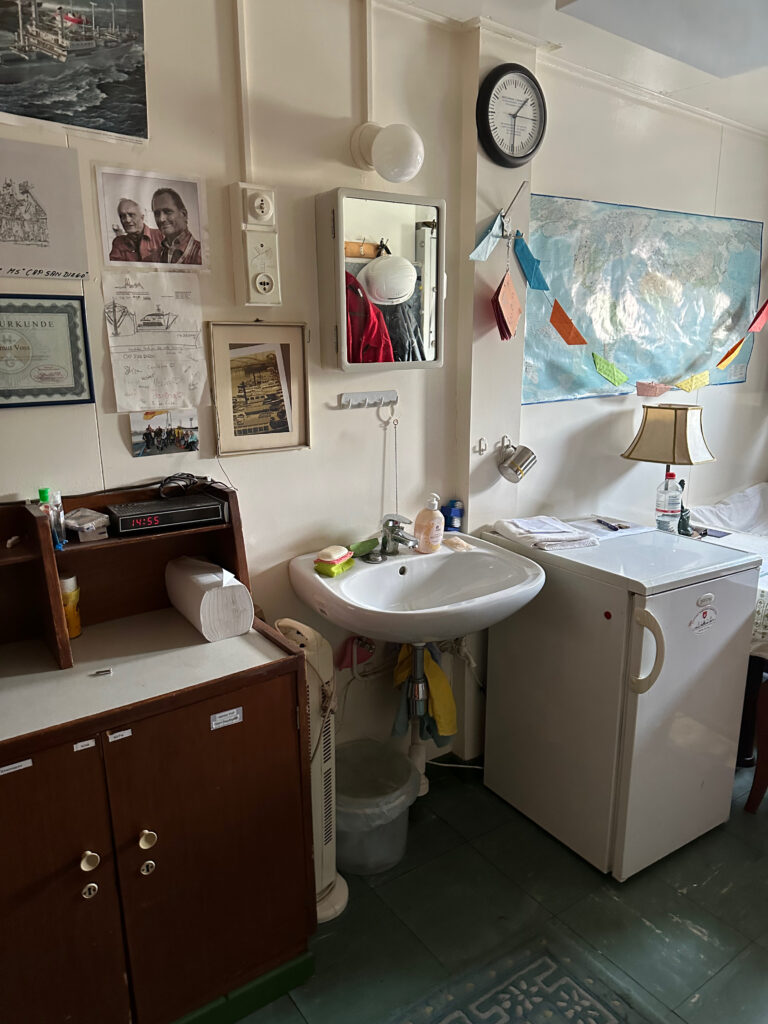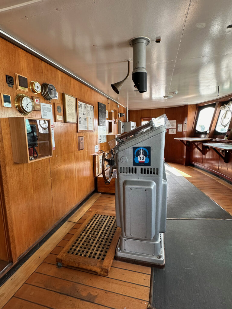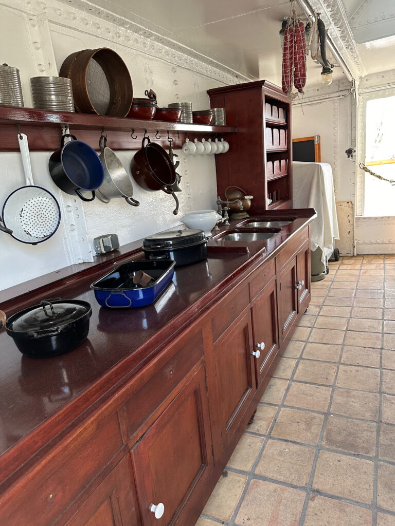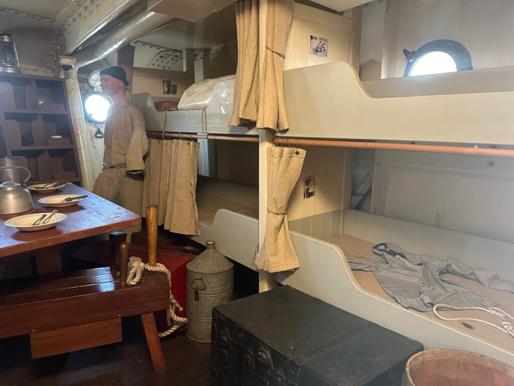 Auf dem Museumsschiff könnt ihr auch übernachten. Die Kabinen sind modernisierte Original Kabinen und sehr beliebt bei Touristen.