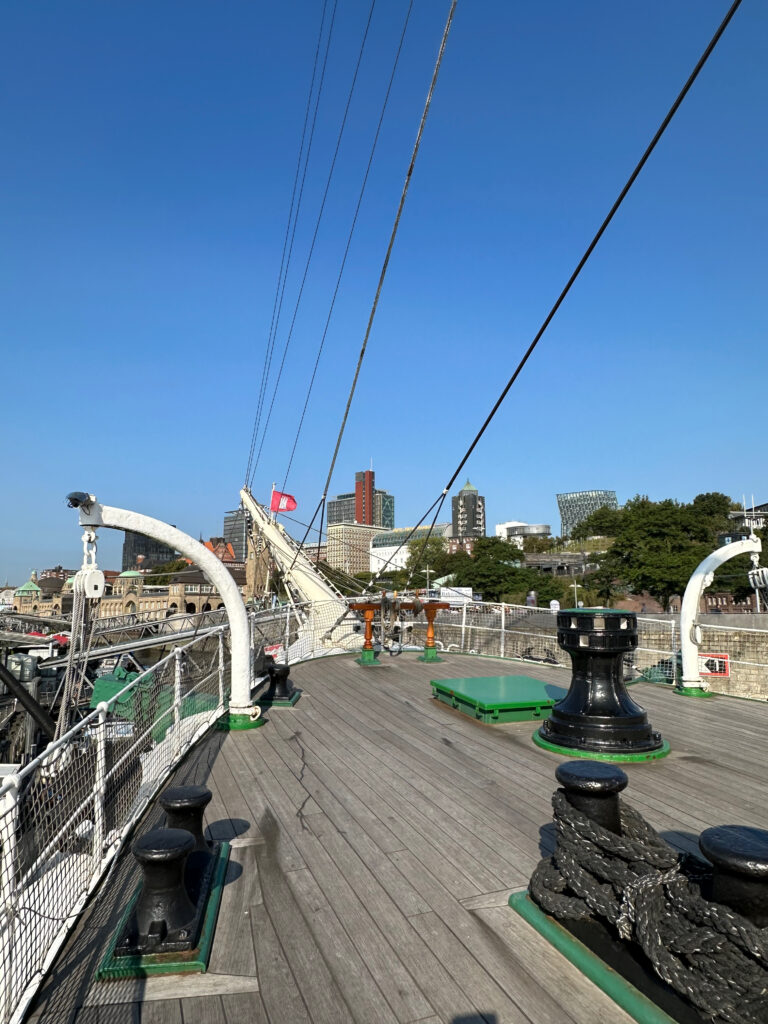 Für Kinder besonders spannend ist der große Maschinenraum und die Kommandobrücke. Vom Schiff hat man auch einen schönen Blick auf die Elphi und die beiden Musicals „König der Löwen“ und „Die Eiskönigin“.