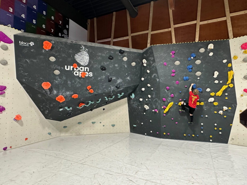 Die Halle selbst ist großzügig, hell und mit abwechslungsreichen Routen ausgestattet. Die verschiedenen Schwierigkeitsgrade sind farblich und nummerisch gekennzeichnet, sodass auch Anfänger schnell einsteigen können. Neben klassischen Kletterwänden gibt es spannende Extras wie einen Kinderbereich mit Rutsche, eine Ballmaschine, verwinkelte Höhlen zum Erkunden mit Stirnlampe und sogar einen kleinen Ninja Parcours.