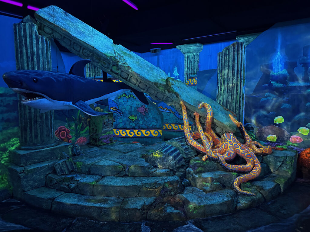Im Schwarzlichtviertel könnt ihr beim Minigolf 18 1/2 Bahnen mit beindruckenden Schwarzlicht- und 3D-Effekten spielen. Die abenteuerliche Reise beginnt mit einer U-Bootfahrt in die Tiefen und führt euch durch detailreiche Fantasiewelten wie Atlantis, den Dschungel und die Fabrik. Ihr benötigt hier je nach Gruppengröße 60-120 Minuten. Eine tolle Empfehlung für Aktivitäten in Hamburg mit Kindern.