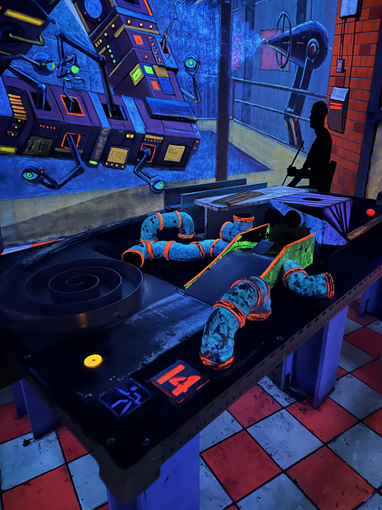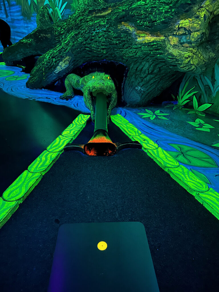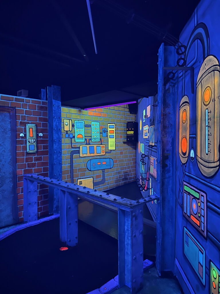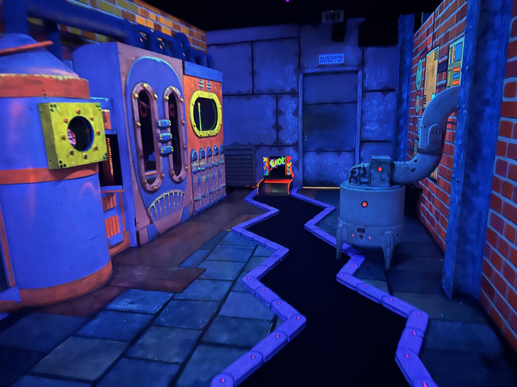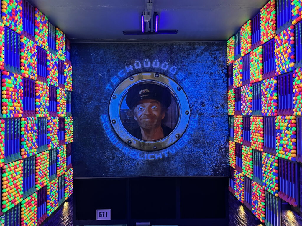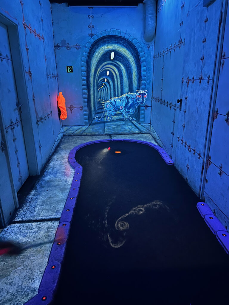 Ihr möchtet Minigolf in einer coolen Location spielen? Dann solltet ihr mit euren Kindern unbedingt ins Schwarzlichtviertel gehen, Deutschlands größte Schwarzlichtviertel-Erlebniswelt und ideal für Ausflüge mit Kindern in Hamburg.