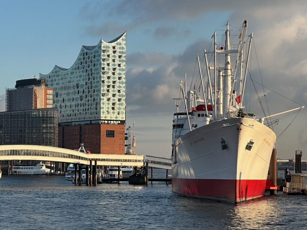 Die Cap San Diego liegt nur wenige Gehminuten von der Rickmer Rickmers enfernt in Richtung Elphi und besticht durch seine elegante Silhouette. Ein weiteres schwimmendes Wahrzeichen und das größte betriebsfähige Museumsfrachtschiff der Welt.
