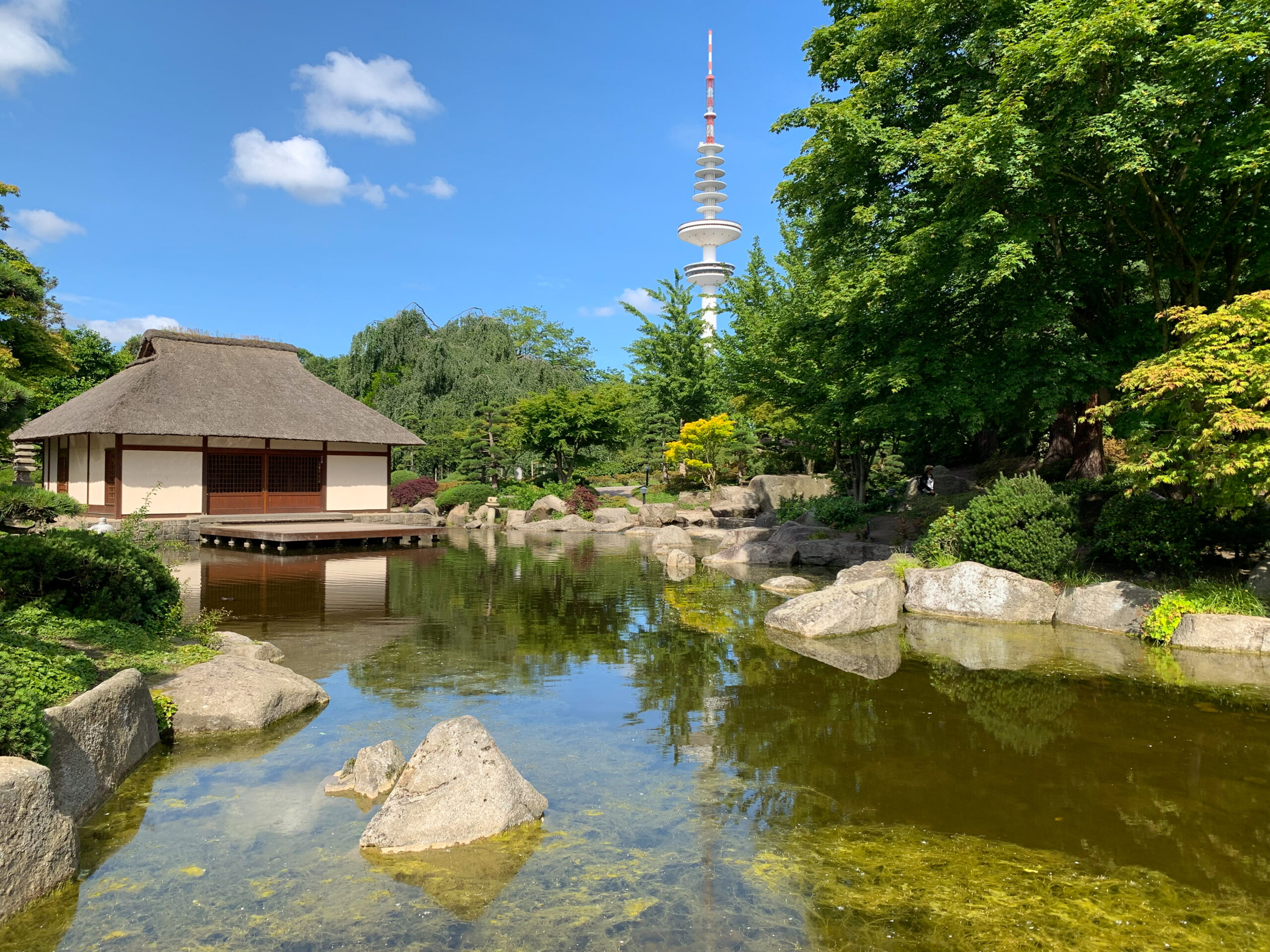 Mitten im Herzen der Stadt, umgeben von belebten Einkaufstraßen, dem Congress-Centrum und der Hamburger Messe, liegt die einzigartige 15 Hektar große Parkanlage Planten un Blomen (Hochdeutsch: Pflanzen und Blumen).