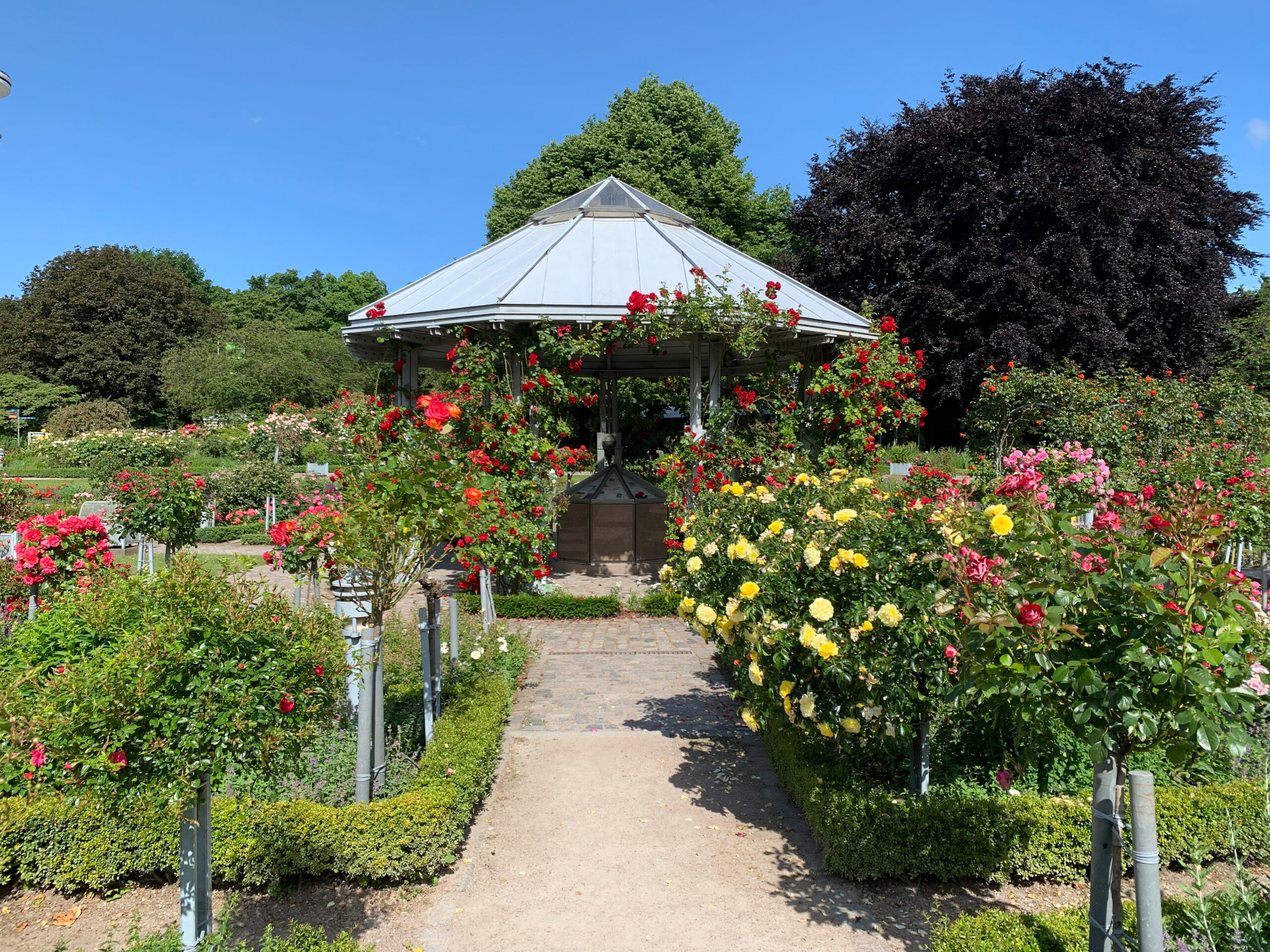 Der Rosengarten mit seinen 300 verschiedenen Rosensorten wird nicht nur Erwachsene begeistern. Auch Kinder erfreuen sich an der Farbenpracht und dem Duft der Rosen. Im Sommer erklingt aus dem offenen Pavillon klassische Musik.