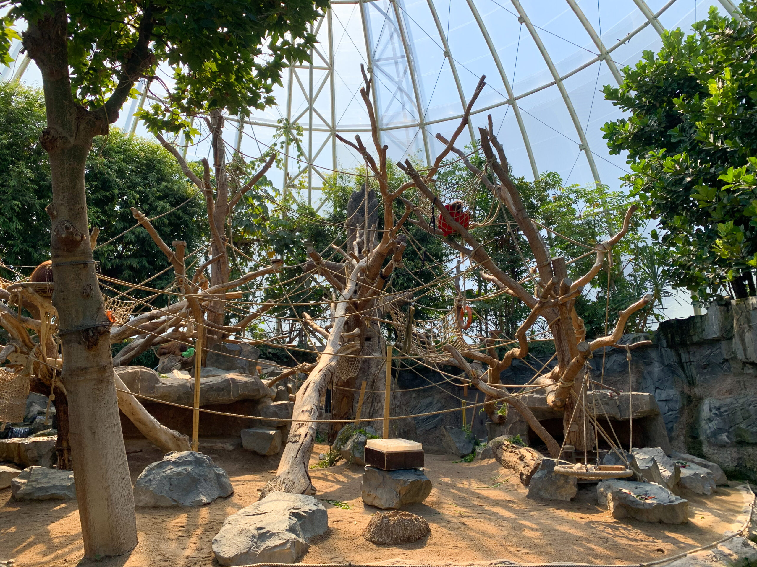Im Orang Utan Haus werden weitere tierische Kunststücke geboten. Die aktiven und neugierigen Orang Utans brauchen viel Freiraum zum Klettern, Schwingen und Springen.