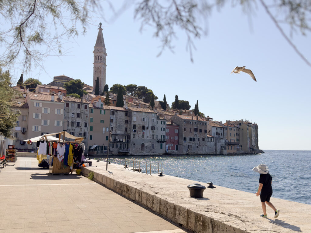 Die verwinkelten, schmalen Gassen führen euch durch farbenfrohe Häuser hinauf zur prächtigen Kirche der Heiligen Euphemia, von deren Turm aus ihr einen traumhaften Blick auf das glasklare Wasser der Adria habt. Auf dem Weg zur Kirche könnt ihr einen Stopp beim Bunker oder beim alten Leuchtturm einlegen: von hier aus habt ihr einen schönen Blick aufs Meer.