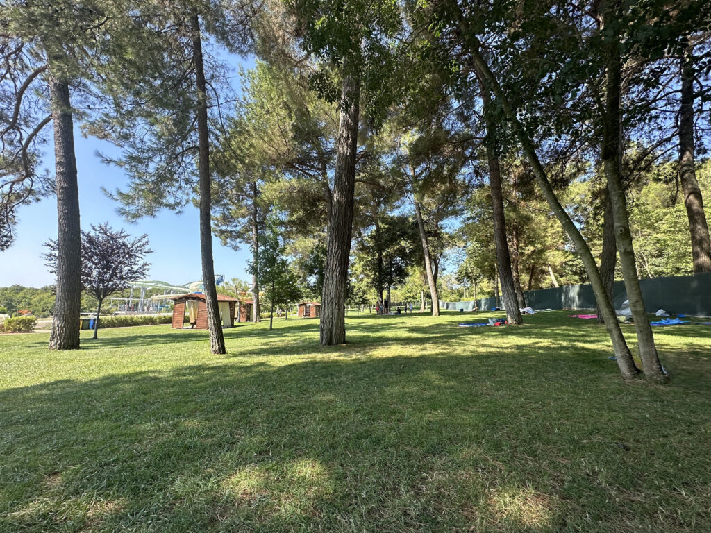 Es gibt rechts neben dem Wellenbad eine große Liegewiese mit schattigen Plätzen unter den großen Bäumen. Ideal für Familien mit kleinen Kindern. Es können auch Sonnenliegen (9 Euro für 2 Liegen + Schirm), eine VIP-Sonnenliege (42 Euro), eine Familien Cabana (28 Euro, Tisch + Stühle), Sunbed Gazebo (26 Euro) und Schließfächer (6 Euro) online oder vor Ort gebucht werden.