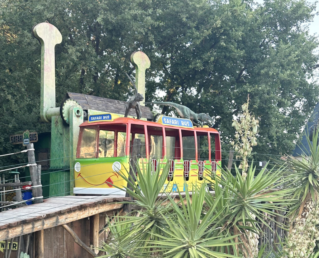 Auf dem Dinopark Gelände gibt es viele kostenlose Parkplätze. Vor Ort gibt es Restaurants, Cafés und eine Dschungel Bar, die viele schattige Plätzchen bietet und direkt neben einem Spielplatz liegt.