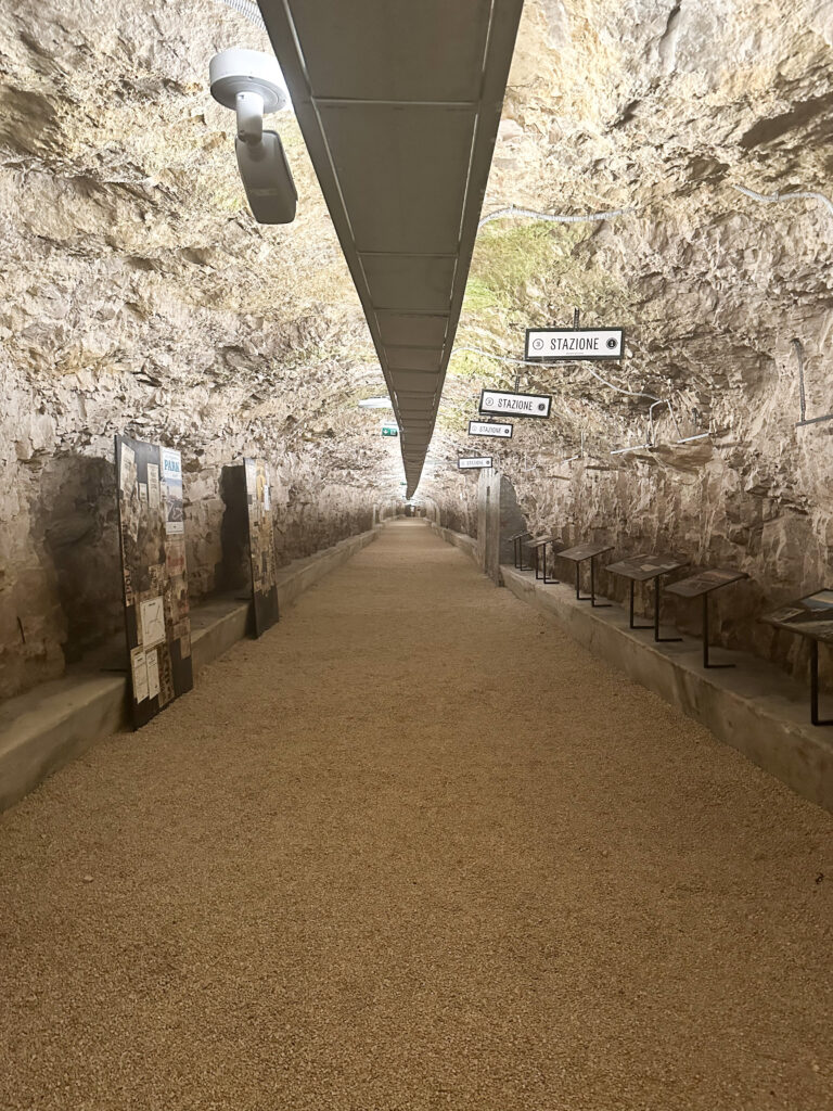 Ein weiteres Highlight in Pula ist die Zerostrasse – ein unterirdisches Tunnelsystem aus dem Ersten Weltkrieg, das einst als Schutzbunker diente. Die Tunnel verlaufen unter der Stadt und führen direkt zum Kastell von Pula, das hoch über der Altstadt thront. Nach einem Spaziergang durch die geheimnisvollen Tunnel erreicht ihr das Kastell, das nicht nur einen herrlichen Panoramablick über die Küste und das Meer bietet, sondern auch Einblicke in die militärische Geschichte der Region gewährt.