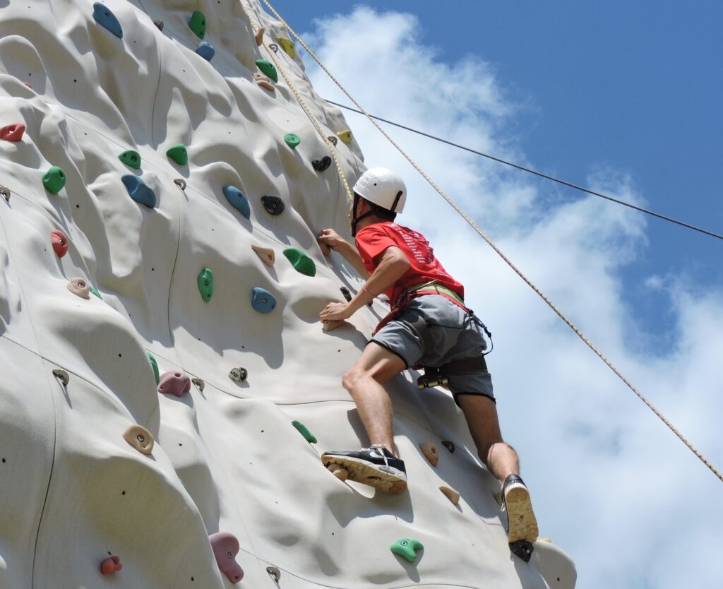 Kletterbegeisterte können sich an der 12 Meter hohen Kletterwand und seinen 11 Routen austoben. Ihr könnt zwischen den einfacheren gelben oder den schwierigeren schwarzen Routen wählen.