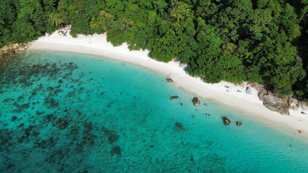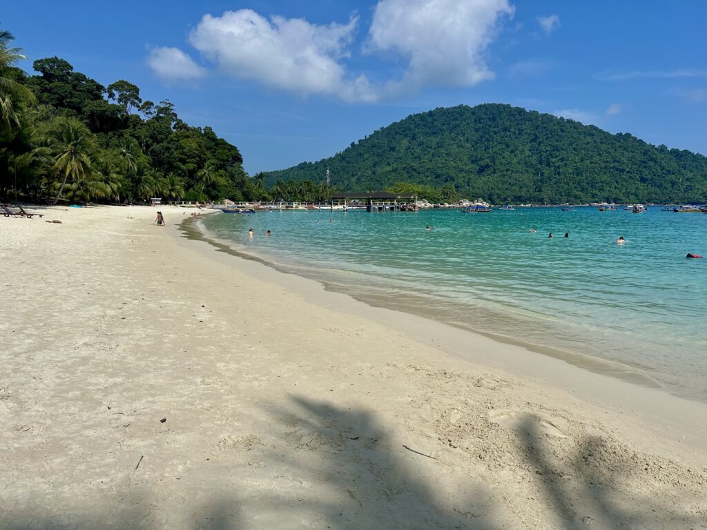 Entspannen am Strand: Die Strände sind einfach wunderschön. Mit einem Wassertaxi könnt ihr euch ganz einfach zu eurem persönlichen Traumstrand fahren lassen, zwischendurch ins kristallklare Wasser springen und euch abkühlen. Mittags sucht ihr euch ein schönes Restaurant direkt am Meer, genießt leckeres Essen mit Blick aufs Wasser und spürt den warmen Sand unter euren Füßen. Einfach herrlich. Auch für Kinder ein absoluter Traum. An manchen Stränden liegen jedoch sehr viele abgestorbene Korallen. Daher nehmt am besten Strandschuhe mit (die könnt ihr auch noch bei Decathlon in Kuala Lumpur in der Nähe der Petronas Towers kaufen).