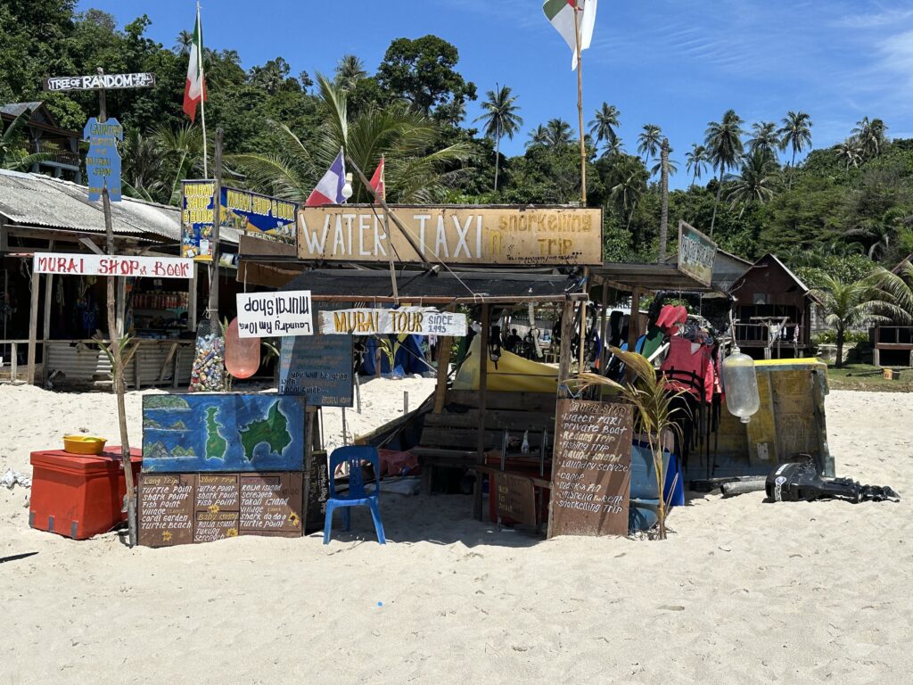 Zum Schwimmen und Schnorcheln eignen sich nur wenige Abschnitte des Strandes. Unser Lieblingsspot war am Ende des Long Beach bei den Space Divers. Dort ist es deutlich entspannter, und ihr könnt für wenig Geld einen Sonnenschirm inklusive Bambusmatten für den ganzen Tag mieten. Zum Mittag essen sind wir immer ins Restaurant Pit Stop Station gegangen. Unbedingt rechtzeitig da sein. Der Laden ist sehr beliebt und die Plätze sind begrenzt.