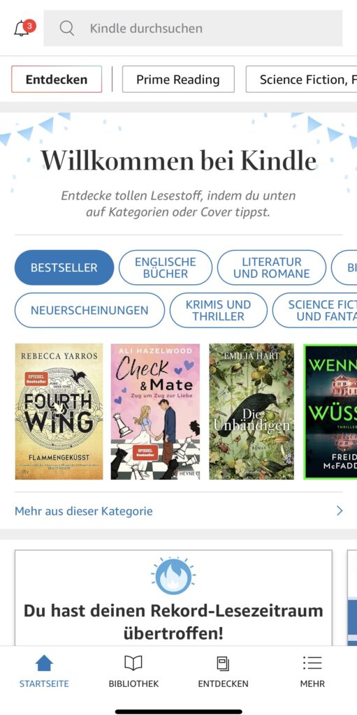 KindleUnlimited bietet Zugang zu Millionen von e-books und tausenden Hörbüchern und kostet 11,75 monatlich. Oftmals gibt es gute Deals. Ebooks können auch einzeln gekauft werden.