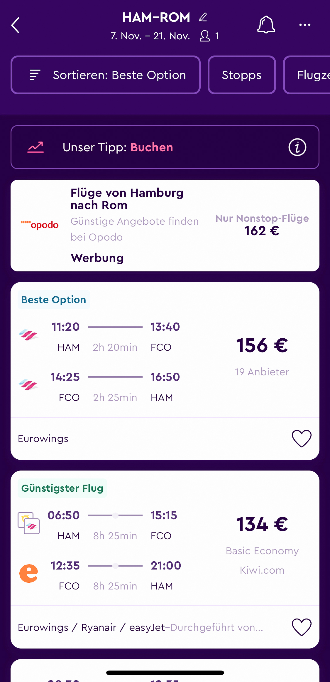 Der „Nur Airlines“ Filter ist sehr wichtig, damit du gleich auf die Webseite der Fluggesellschaft weitergeleitet wirst und nicht auf eine Online-Reiseagentur wie Kiwi oder Opodo. Dort können zusätzliche Kosten im Laufe des Buchungsprozesses anfallen. Bei Problemen hast du es nicht direkt mit der Airline zu tun, sondern die Agentur ist noch zwischengeschaltet.