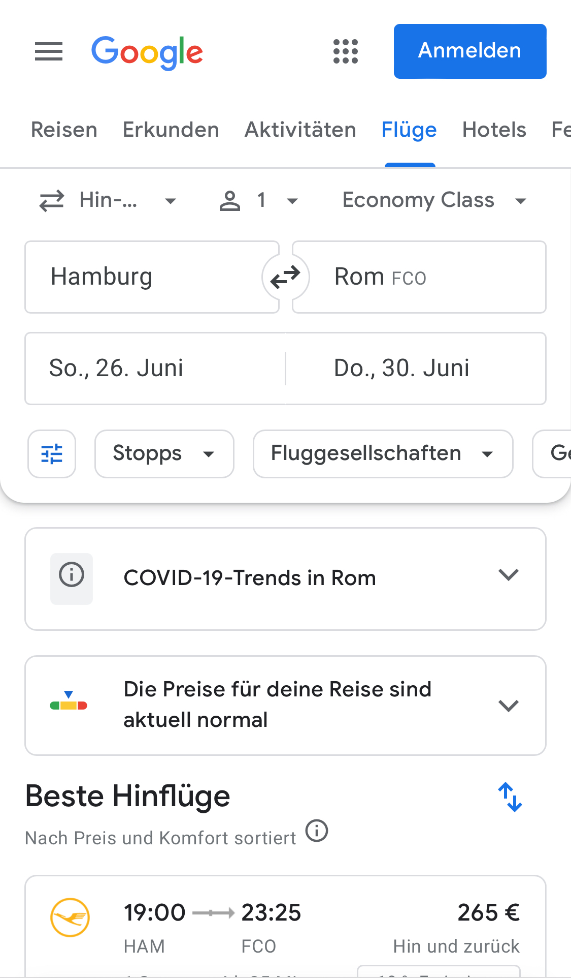 Die Web-App Google Flights gehört zum Suchgiganten Google und ist eine bekannte und beliebte Flugsuchmaschine. Sie überzeugt durch eine einfache und schnelle Flugsuche, zeigt die günstigsten Flüge an und bietet zahlreiche Filtermöglichkeiten.