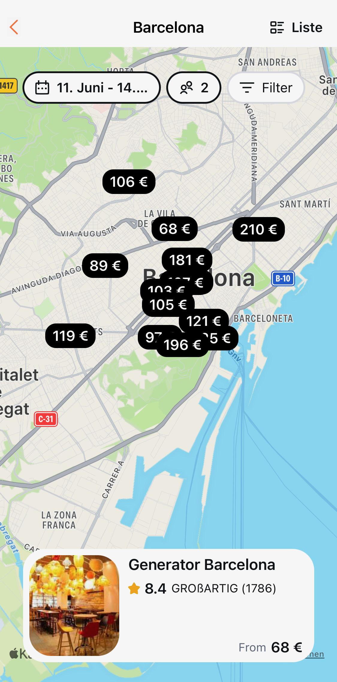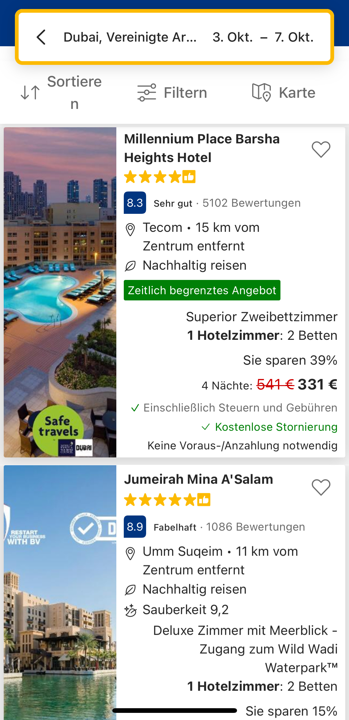 Wir benutzen booking.com sehr häufig zum Buchen von Hotels und Appartements. Die App ist übersichtlich und einfach zu bedienen und bietet viele Filtermöglichkeiten wie Budget pro Nacht, Bewertung, Ausstattung und Viertel. Besonders gerne nutzen wir die Kartenübersicht, um zu schauen, welche Lage das Hotel hat und wie die Preise der anderen Unterkünfte sind. Sehr gut sind außerdem die flexiblen Stornierungsbedingungen.
