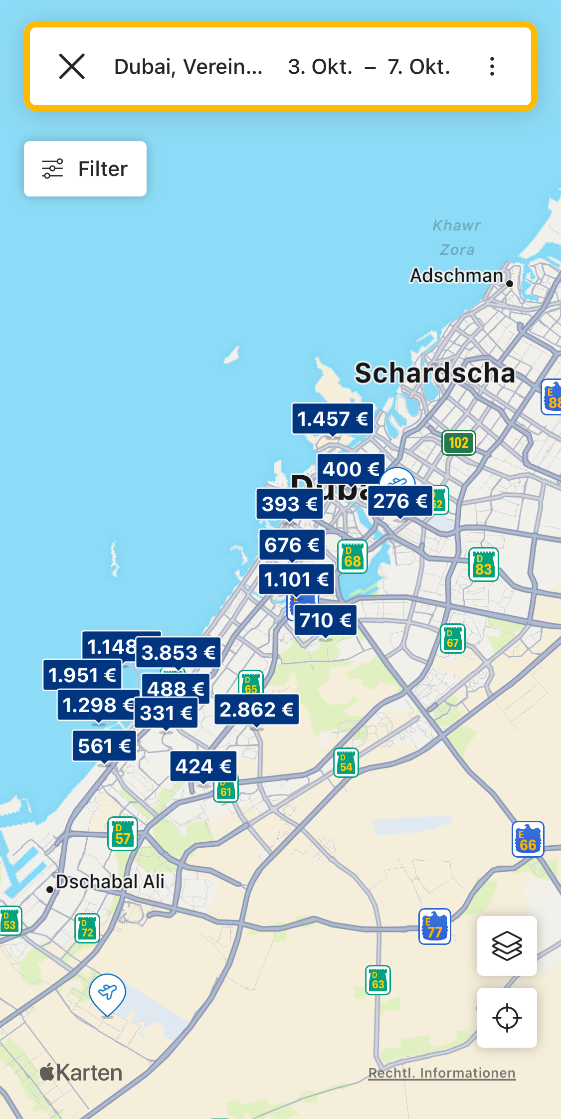 Du kannst anhand der Monatsübersicht schauen, wann es den günstigsten Flug gibt – es gibt drei farbliche Preiskategorien. Folgende Filtermöglichkeiten sind sehr hilfreich: Flughafen in der Nähe, Nonstop-Flüge, Filter nach Allianzen, Handgepäck- und Aufgabegepäck-Rechner, Preisgrafik und „Nur Airlines“ Filter (Seitenmenü/Buchungsseiten).