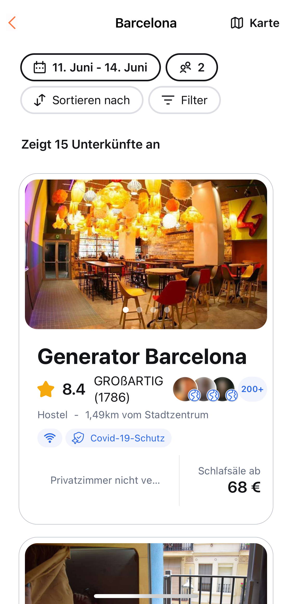 In der Hostelworld App gibt es die Möglichkeit, nach Privatzimmern und Zimmern mit Bad/WC zu filtern. Ihr könnt tausende Hostels, Bilder und Bewertungen durchstöbern, und ihr könnt sogar sehen, wer ebenfalls anreist und über den Hostel-Chat mit den Leuten chatten.