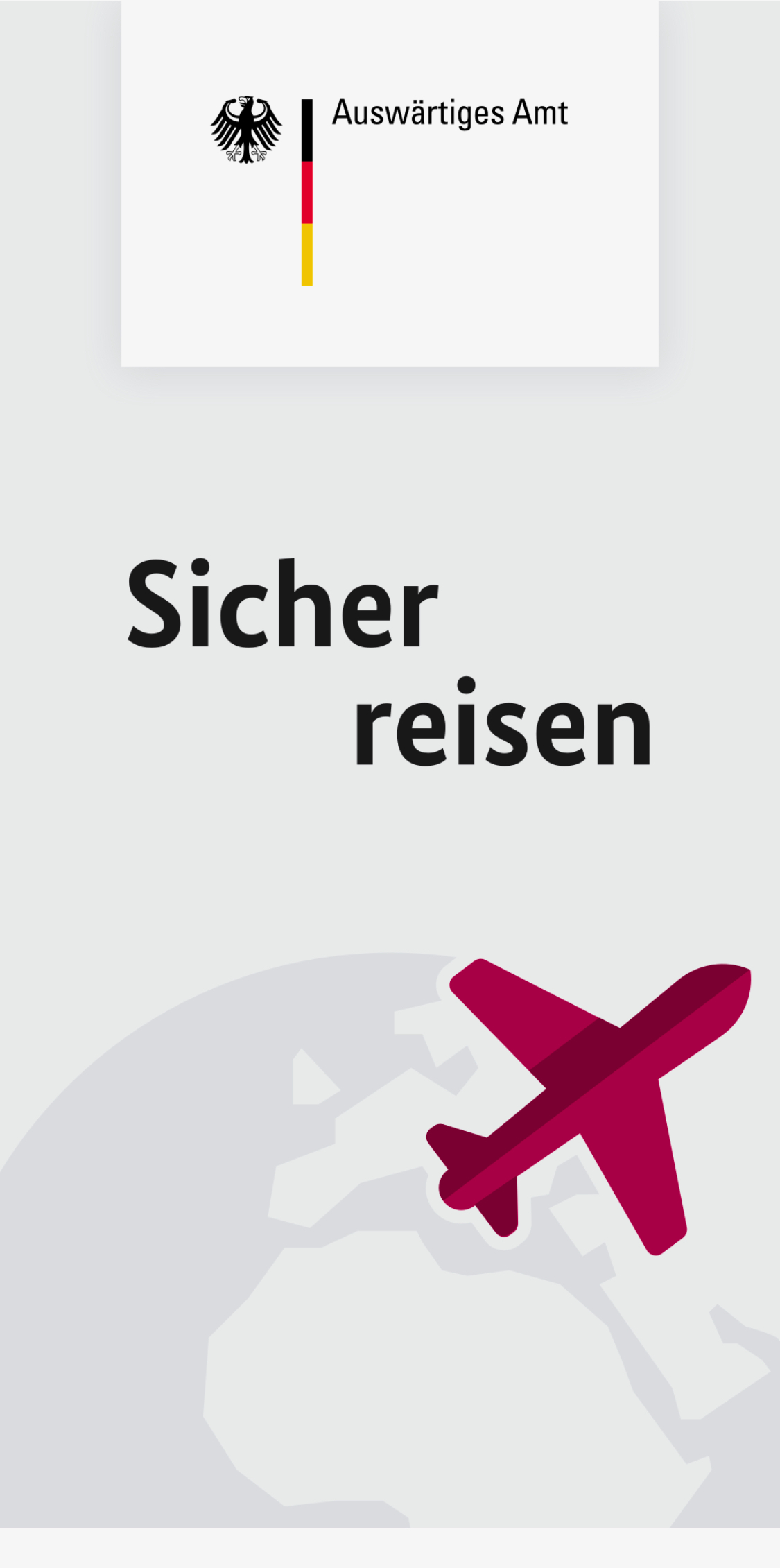 Sicher Reisen ist die Reise-App des Auswärtigen Amtes und informiert über Reise- und Sicherheitshinweise einzelner Reiseländer zu wichtigen Themen wie Sicherheit, Einreise und Zoll, Gesundheit, Natur und Klima.