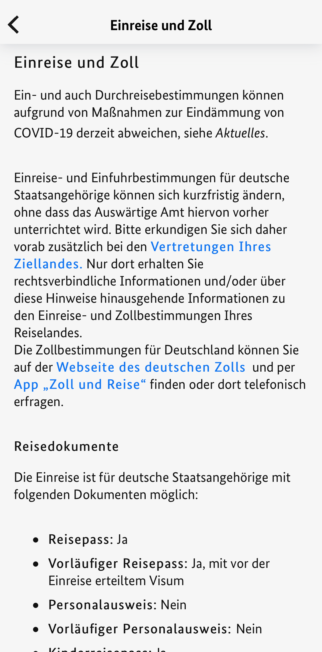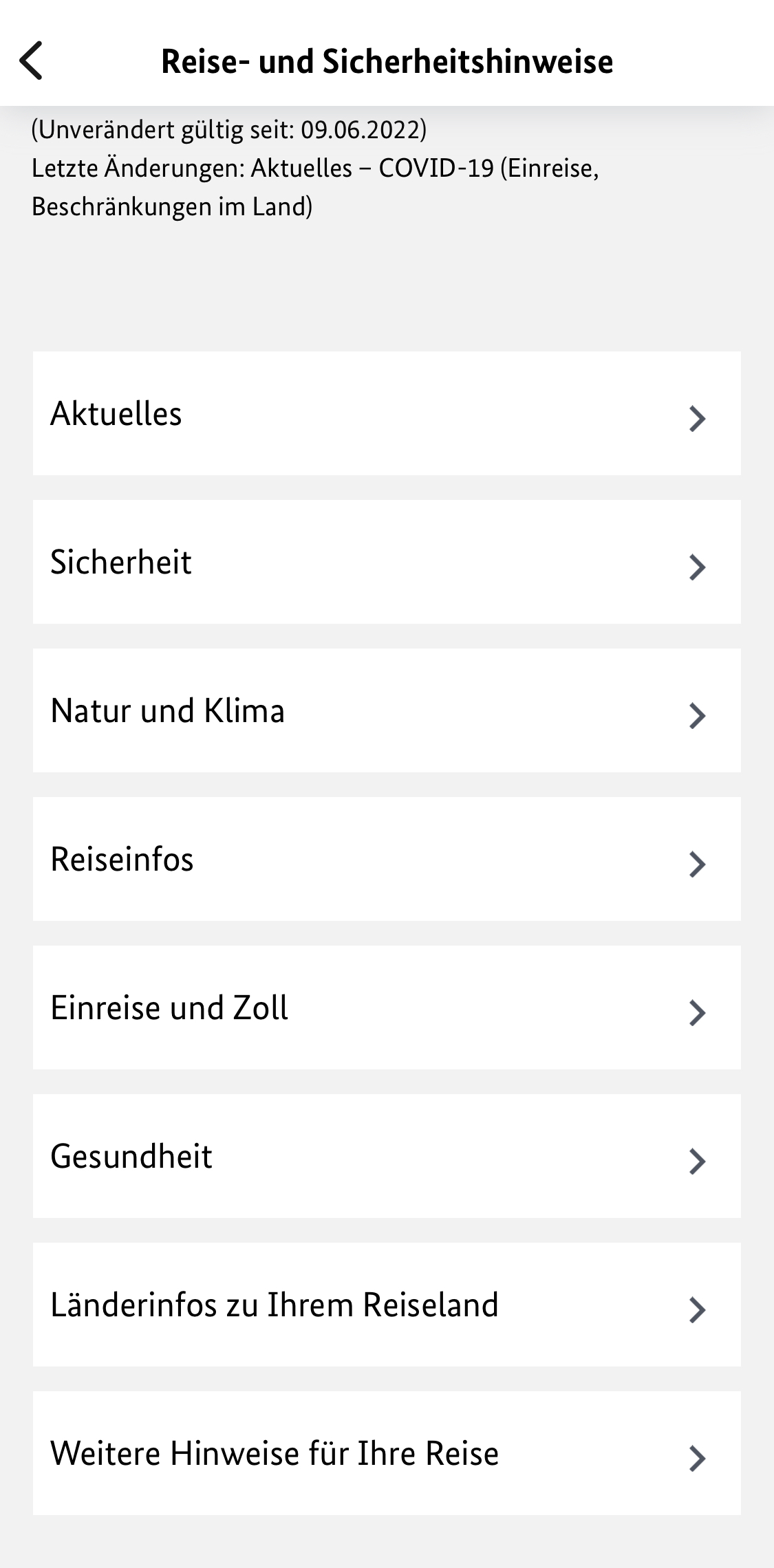In der App findest du auch eine Checkliste für deine Reisevorbereitung und die Adressen der Vertretungen des Reiselandes in Deutschland sowie deutsche Vertretungen vor Ort.
