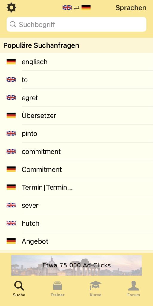 Leo ist ein umfangreiches Wörterbuch mit Vokabeltrainer und Kursangebot. Dir fällt gerade nicht das richtige Wort auf Englisch ein? Dann ist die Leo App genau richtig, um kurz mal was nachzuschlagen. Verschiedene Sprachen können ausgewählt werden, und was ich besonders gut finde, ist die Aussprachefunktion von Leo.