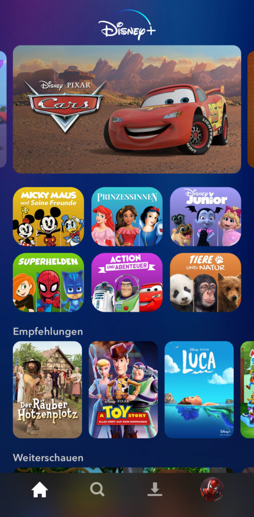 Die Disney+-App mit den fantastischen Disneyfilmen lässt natürlich besonders Kinderaugen strahlen. Wer liebt sie nicht, Filme wie Susi & Strolchi, Pocahontas und König der Löwen.