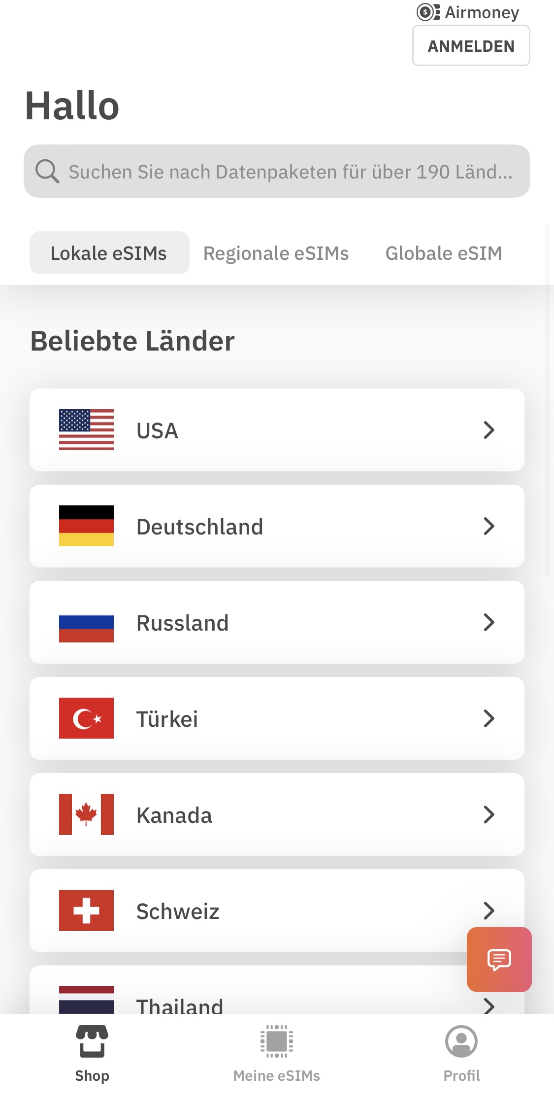 Airalo bietet für Smartphones mit eSIM-Funktionalität die Möglichkeit, eine eSIM zu beziehen, ohne vor Ort einen Laden suchen zu müssen, um eine SIM-Karte kaufen zu können. Die SIM-Karte ist auch sofort einsatzbereit. Es können Datenpakete für einzelne Länder, Regionen oder weltweit gekauft werden.