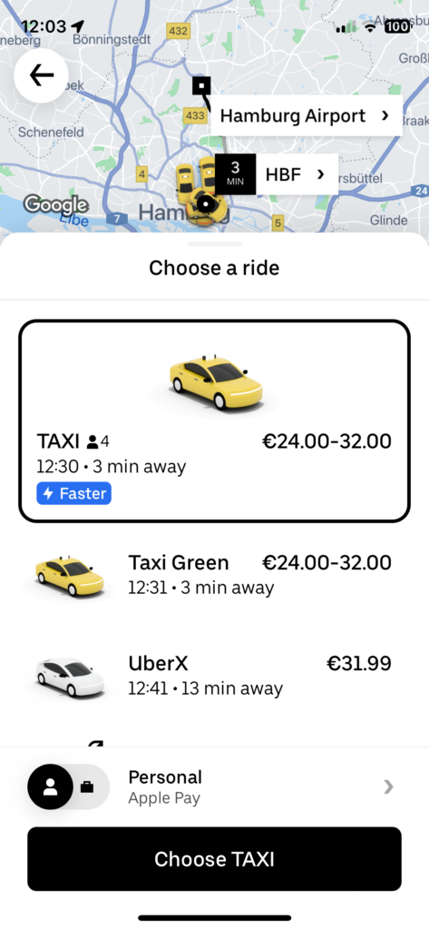 Uber ist der weltweite Vorreiter für eine Vermittlungsplattform von Fahrern und angefragten Fahrten. In vielen Ländern der Welt ist Uber bereits verfügbar, aber nicht überall, da es immer wieder lokale Verbände gibt, die gegen die Betriebserlaubnis von Uber lobbyieren. Einfach prüfen, ob in der Region Uber angeboten wird. Inzwischen kannst du über Uber Eats auch Essen und Lebensmittel bestellen.