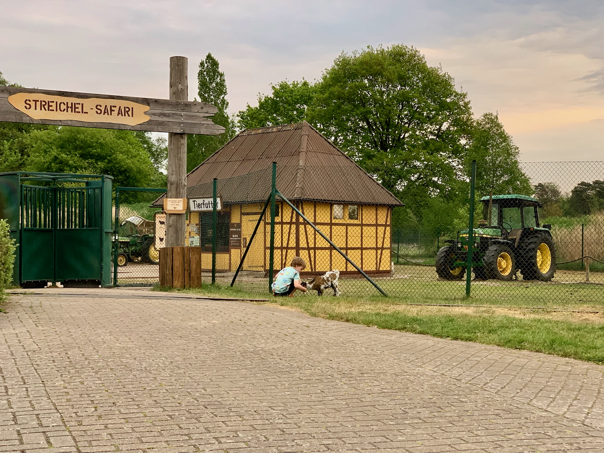 Im Streichelzoo warten die Zwergziegen und Schafe nur darauf, mit dem relativ teuren Futter (3 Euro für eine Minischale) gefüttert zu werden und stürzen sich ganz ausgehungert auf das Futter und leider auch auf die Kinder. Entspannter ist das Füttern durch den Zaun.
