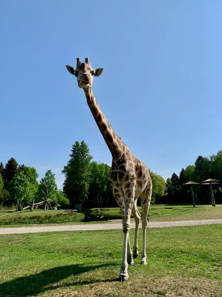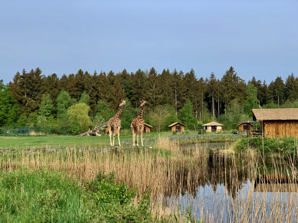 Wir wollten den Serengeti Park pur erleben und haben im Mai für zwei Nächte die Masai-Mara-Lodge mit Blick auf das Freilandgehege mit Giraffen, Straußen und Antilopen gebucht. Unseren Milchkaffee haben wir morgens bei schönstem Wetter auf unserer Terrasse mit Blick auf die Tiere genossen.