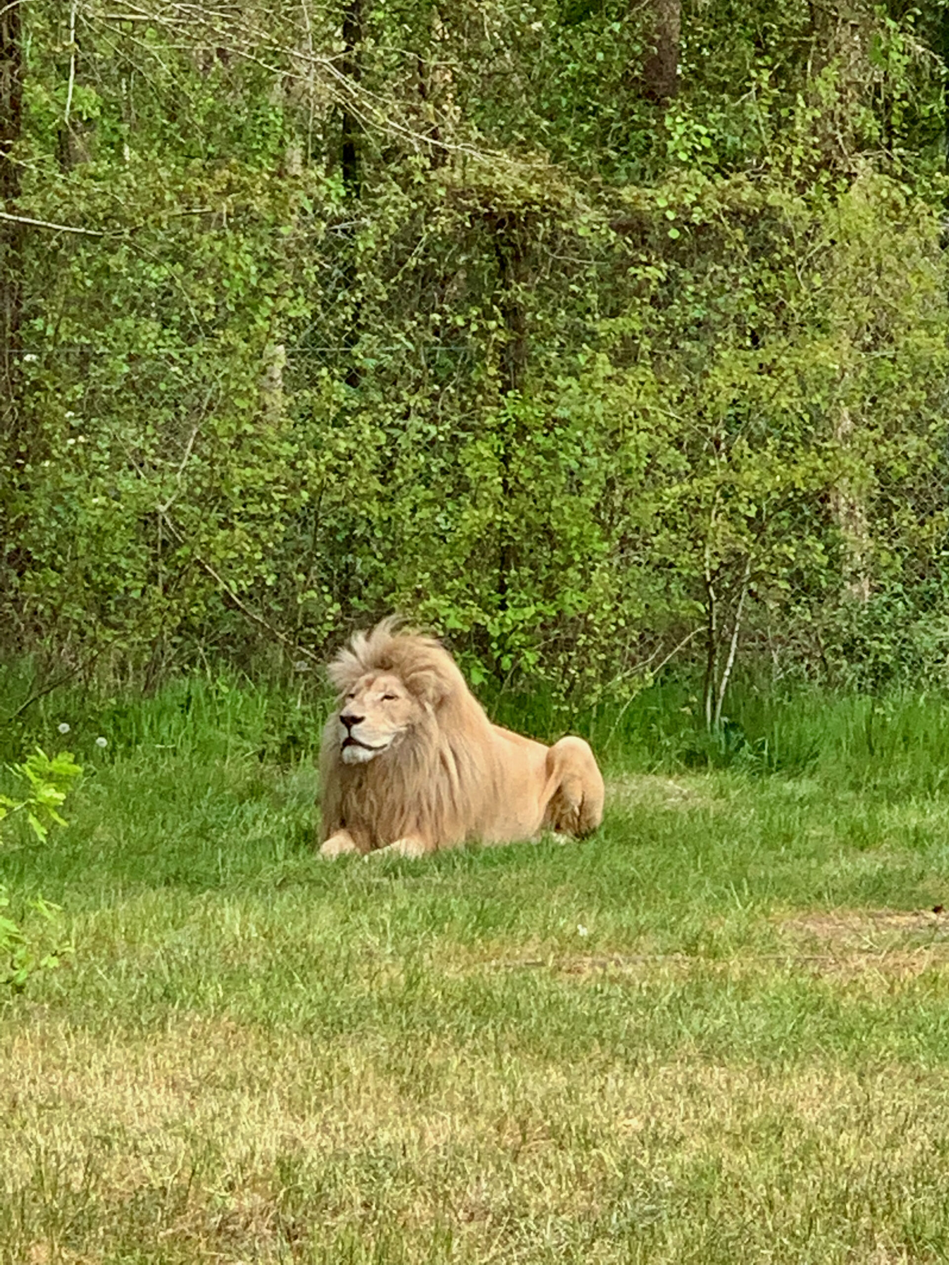 An einem Tag sind wir gegen 11 Uhr durch den Tierpark gefahren und konnten den Löwen und Tigern beim Fressen zuschauen, weil vorher die Fütterung stattgefunden hat.