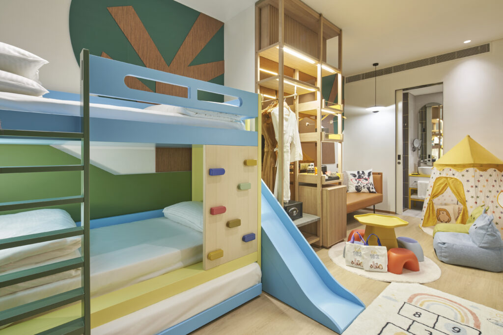 Eine Besonderheit sind aber die schönen Familienzimmer: Loft Family (23-27 qm), Family Room (38 qm) und die Family Suite (46 qm). Das Familienzimmer und die Suite verfügen über ein buntes Kinder Hochbett mit Rutsche.