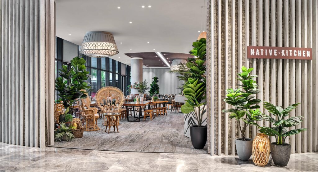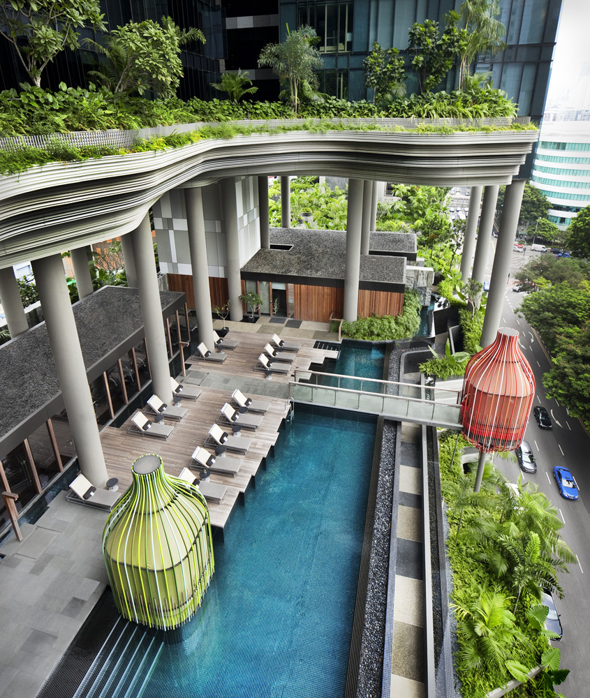 Beeindruckend ist die üppige, tropische Begrünung der Fassade und die „Urban Farm“ auf der Dachterrasse (Level 16) des Hotels. Hier wird eine große Variation an Gemüse, Früchten, Kräutern und essbaren Blüten angebaut, die der Gast dann im Lime Restaurant, der Club Lounge oder im Spa Bereich serviert bekommt.