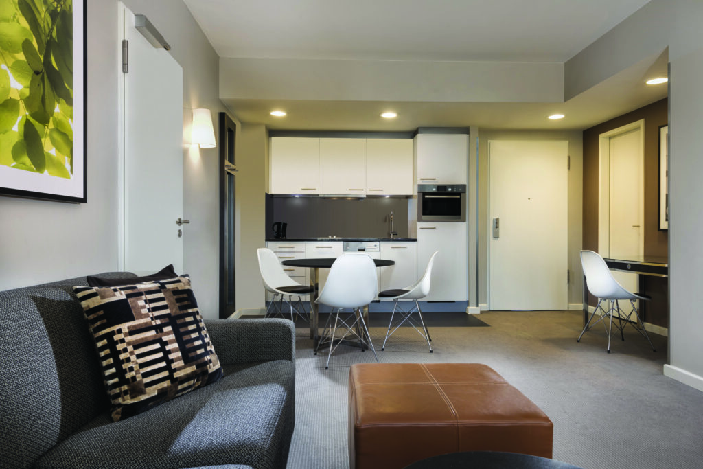 Das Adina Apartment Hotel eignet sich super für Familien, denn die modernen Apartments bieten viele Vorteile: große Zimmer, eine voll ausgestattete Küche, eine Waschmaschine und ein großzügiger Wohnbereich, der zum Entspannen und Spielen einlädt.