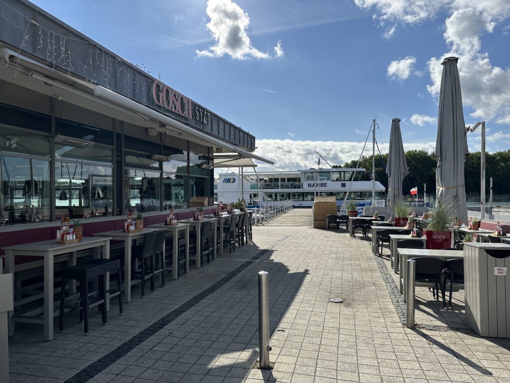 In Travemünde liegt das Restaurant direkt am Anfang der Travepromenade mit Aussicht auf die vorbeifahrenden Schiffe. Die große Sonnenterrasse ist klasse und das Essen ist unglaublich lecker.