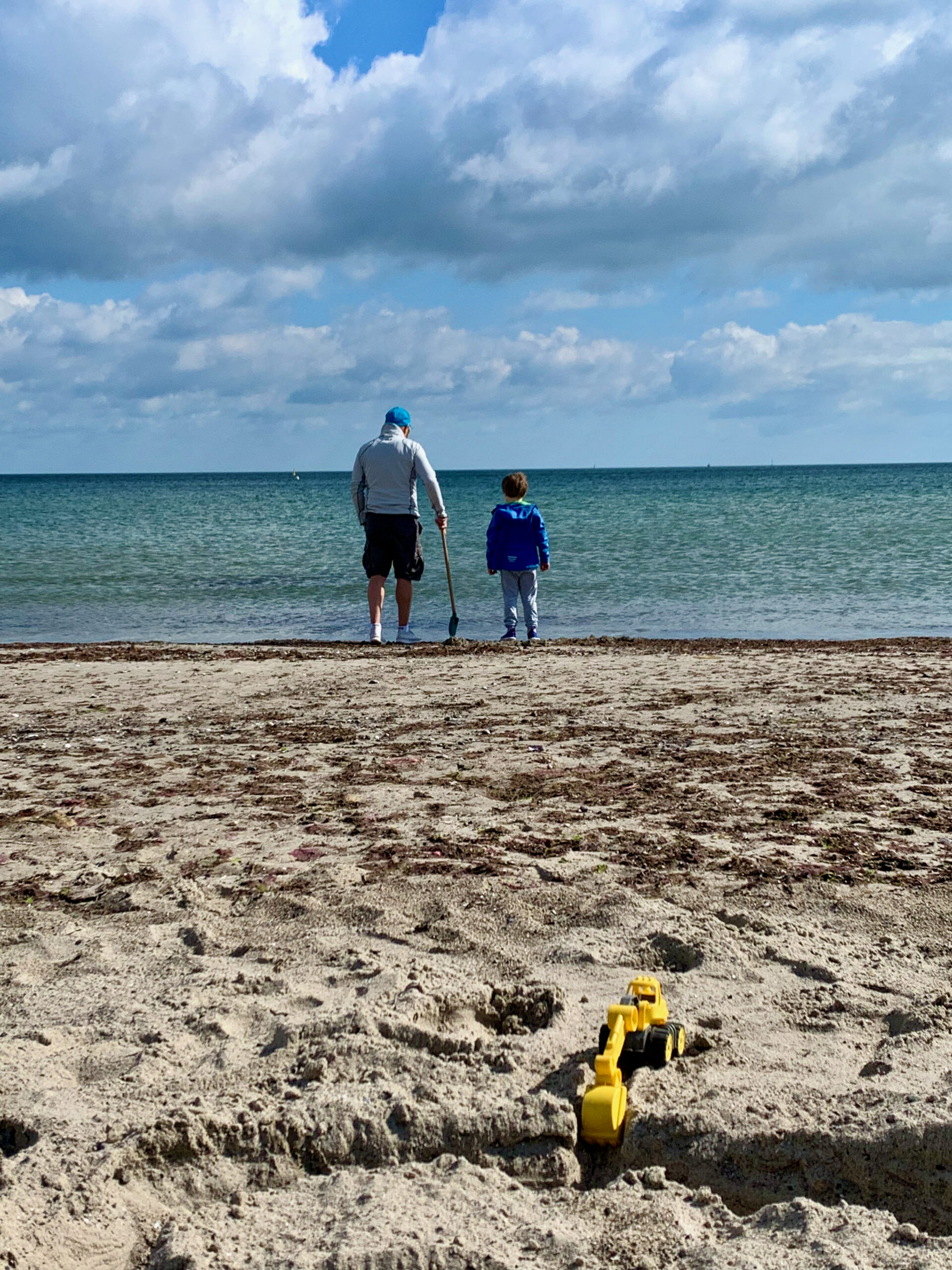 Der Strand mit dem coolen Piratenspielplatz ist natürlich ein Traum für alle Kinder. Badehose anziehen, Eimer und Schaufel mitnehmen und am Strand nach Muscheln suchen und Quallen beobachten. Unser Sohn kann sich damit stundenlang beschäftigen.